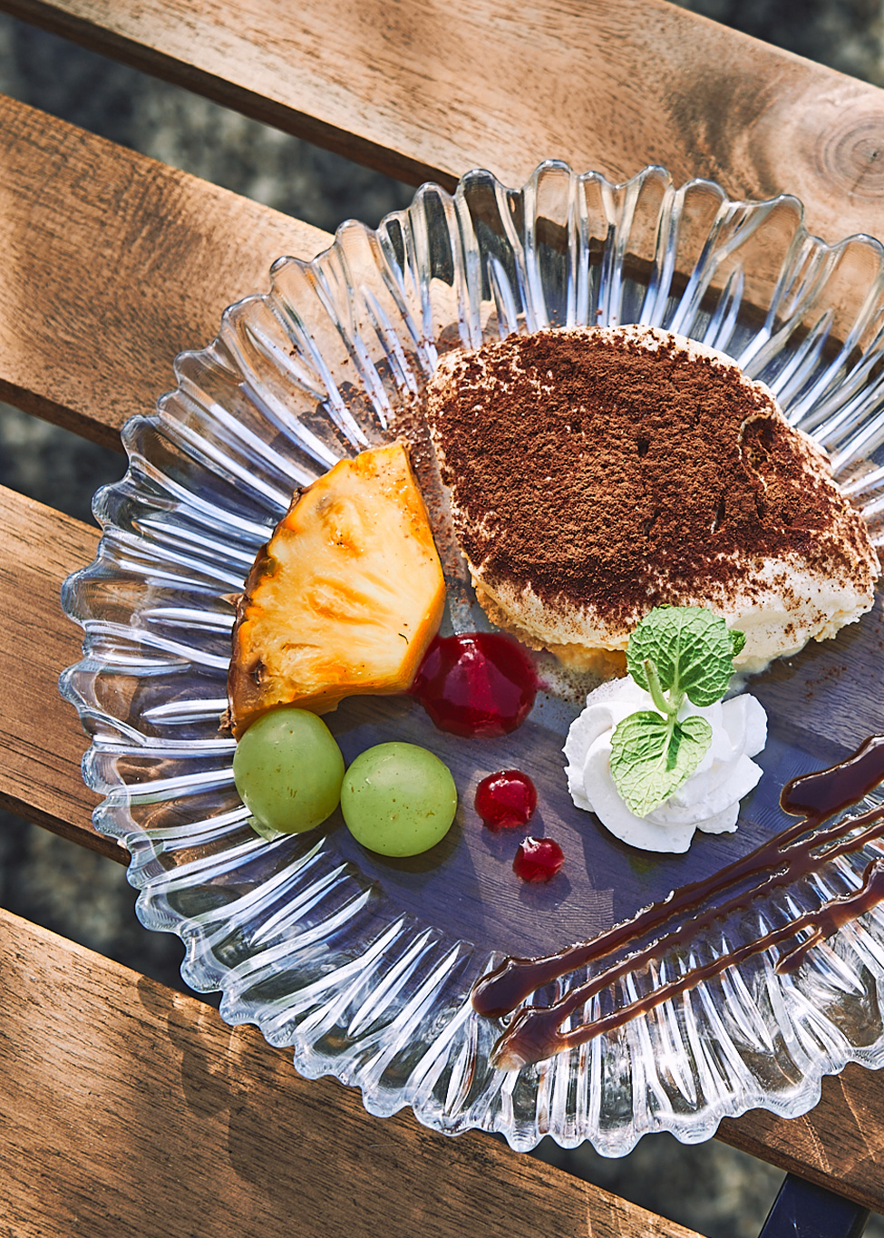ランチタイムにはドルチェがセットにでき、+240円という価格にそぐわぬ豪華なプレートが登場する。こちらも手作りしているというから、さらに驚きだ。ティラミスはイタリアンチーズから作り、フレッシュなフルーツやクリームでデコレーション。これを食べずには帰れない、気分の上がるスイーツだ。