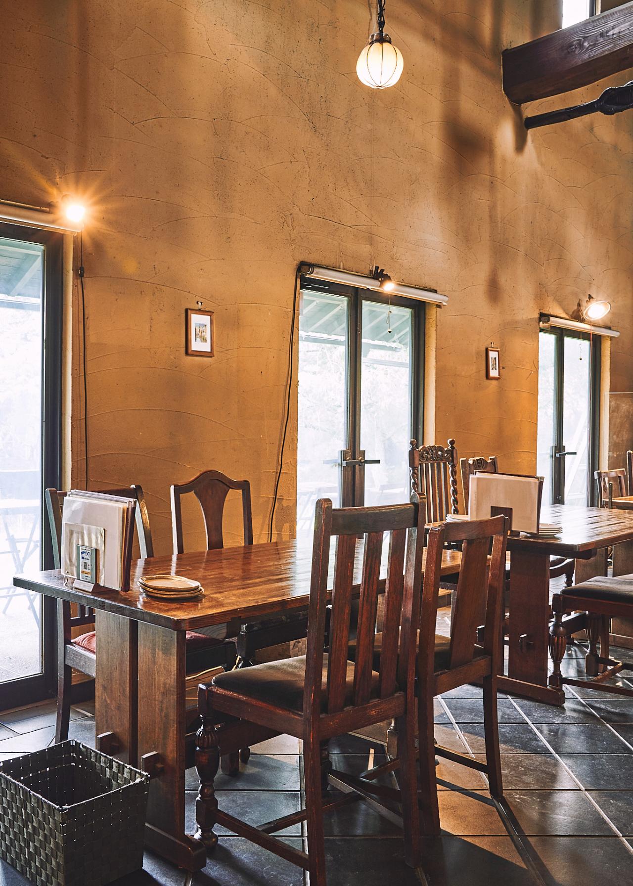 美術館とともに建築されたという風情のある建物に入ると、落ち着いた色のテーブル&チェアが並んでいる。ここはレストランというよりトラットリアの趣だ。気軽な雰囲気で食事が楽しめる。「かしこまった料理よりカジュアルなものが好き」と話すオーナーシェフの藤田貴広さんは、〈名古屋マリオットアソシアホテル〉で腕を磨いたのち独立。イタリアンやフレンチの本格的な技を、普段着で食べられる気さくなスタイルに落とし込んでいる。