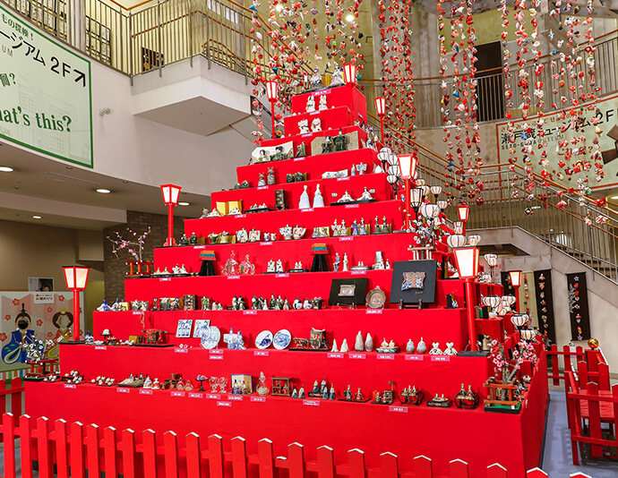 この時期、各地で雛祭りにちなんだイベントが開催されます。愛知県瀬戸市の「瀬戸蔵」に登場する“ひなミッド”には、約千体もの陶磁器とガラスの創作雛が展示されます。京都の下鴨神社では、雛人形を桟俵(さんだわら)に載せ、境内の御手洗川にお雛様を流す「流し雛」が行われます。静岡県袋井市では、徳川家康公ゆかりの禅寺、可睡斎(かすいさい)で圧巻の雛飾りを見られます。