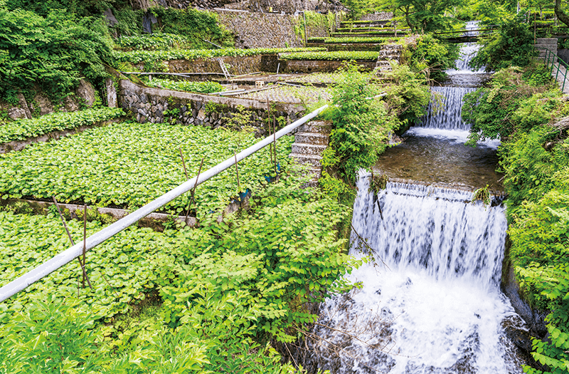 少し変わり種としては、わさびの生産地として名高い静岡県伊豆市の「筏場のわさび田」も、一度は生で見ておきたい棚田スポットです。水音と鳥のさえずりだけが響く、静寂の世界に広がる美しい棚田は、伊豆の自然にとけ込み艶やかな緑のわさびを育みます。各地の棚田で田植えの光景が見られると、いよいよ夏の入り口です。上や下あるいは少し離れた所から棚田を眺めてみると、それぞれ違った趣が楽しめるのではないでしょうか。