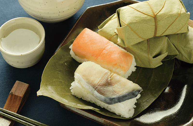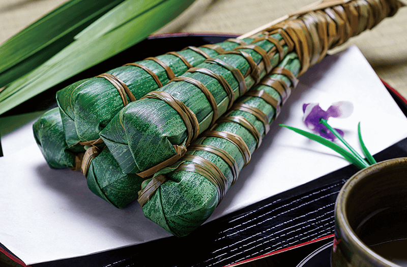 また関西では、京都の「ちまき」や奈良の「柿の葉寿司」もぜひいただきたい一品です。「ちまき」というと関東では竹の皮でおこわを包んだ中華ちまきをイメージしますが、京都では羊羹や葛を笹の葉で包んだものや「むこつまき」と呼ばれる葦(あし)とイグサを使ったものが主流です。