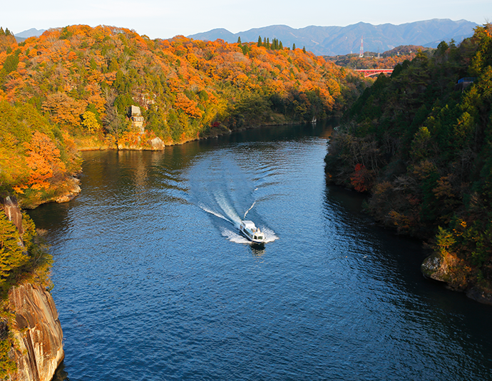 また、岐阜を訪れたら、ぜひ足を運びたいのが恵那峡。日本百景のひとつとして選ばれた、四季折々の絶景を楽しめる場所です。秋は紅葉や楓などが山や湖を彩ります。