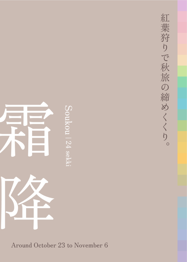 気温の低い朝を迎えると、まさに霜が降りるような時期となります。寒さが増すにつれて紅葉がいちだんと進み、燃えるような赤色に染まります。美しい景色を求めて、紅葉の名所へ出かけませんか。歴史ある寺社仏閣や自然豊かな公園など、そこにしかない切り取りたい景色があります。また、11月は茶人にとってお正月ともいえる時期です。紅葉を楽しみつつ、お茶の世界に触れる大人の旅はいかがでしょうか。