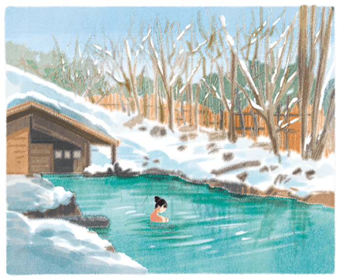 冬の岐阜といえば、世界遺産・白川郷を思い浮かべる方も多いのではないでしょうか。手つかずの自然に、雪を載せた合掌造りの家々が並ぶ光景は、まるで絵本の1ページ。自分も登場人物になったかのようです。おすすめは高台にある荻町城跡の天守閣展望台からの眺望で、集落を一望できる絶好の撮影スポットです。白川郷で日本の原風景を堪能したあとは、雪で冷えた身体を温泉であたためましょう。奥飛騨温泉郷は、北アルプスの迫力ある大自然の中、平湯・新穂高・福地・新平湯・栃尾の5つの温泉が集まる場所です。日本有数の湯量を誇り、個性豊かなお湯が魅力です。