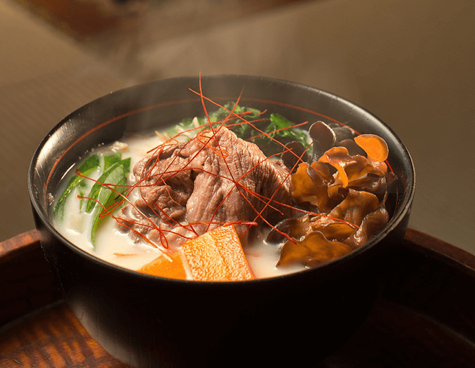 そして白川郷を訪れたら外せないのが、郷土料理の「すったて」です。「すったて」は、大豆をペースト状にすりつぶしたもの。飛騨牛を入れたすったて鍋を食べれば、身体も心もぽっかぽか。冬の白川郷でしか出会えない味です。温かいすったて鍋と温泉を楽しみながら、あなただけの旅物語を紡いでみませんか。