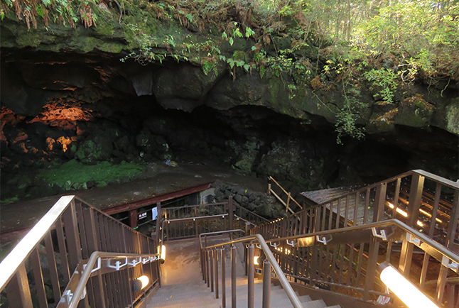 鳴沢氷穴は溶岩の蒸気で形づくられた洞窟で、地下21メートルまで下る竪穴です。巨木が風化してできた空洞である溶岩トンネルや、江ノ島まで続くと伝わる地獄穴などがあり、自然の神秘や偉大さを考えるきっかけがもらえます。