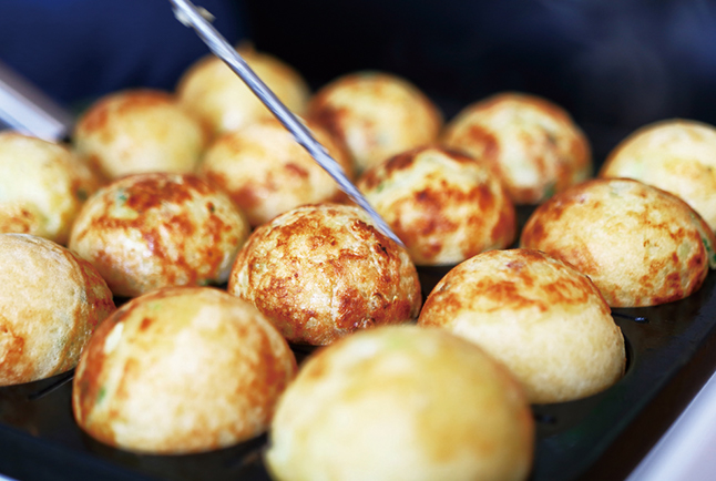 生地自体を醤油で味付けし、キャベツを入れるのが名古屋風の「醤油たこ焼き」です。外はカリッと、中はトロッとした食感で、冷めてもおいしいのが特徴。食べだすと止まらなくなる味わいが魅力です。