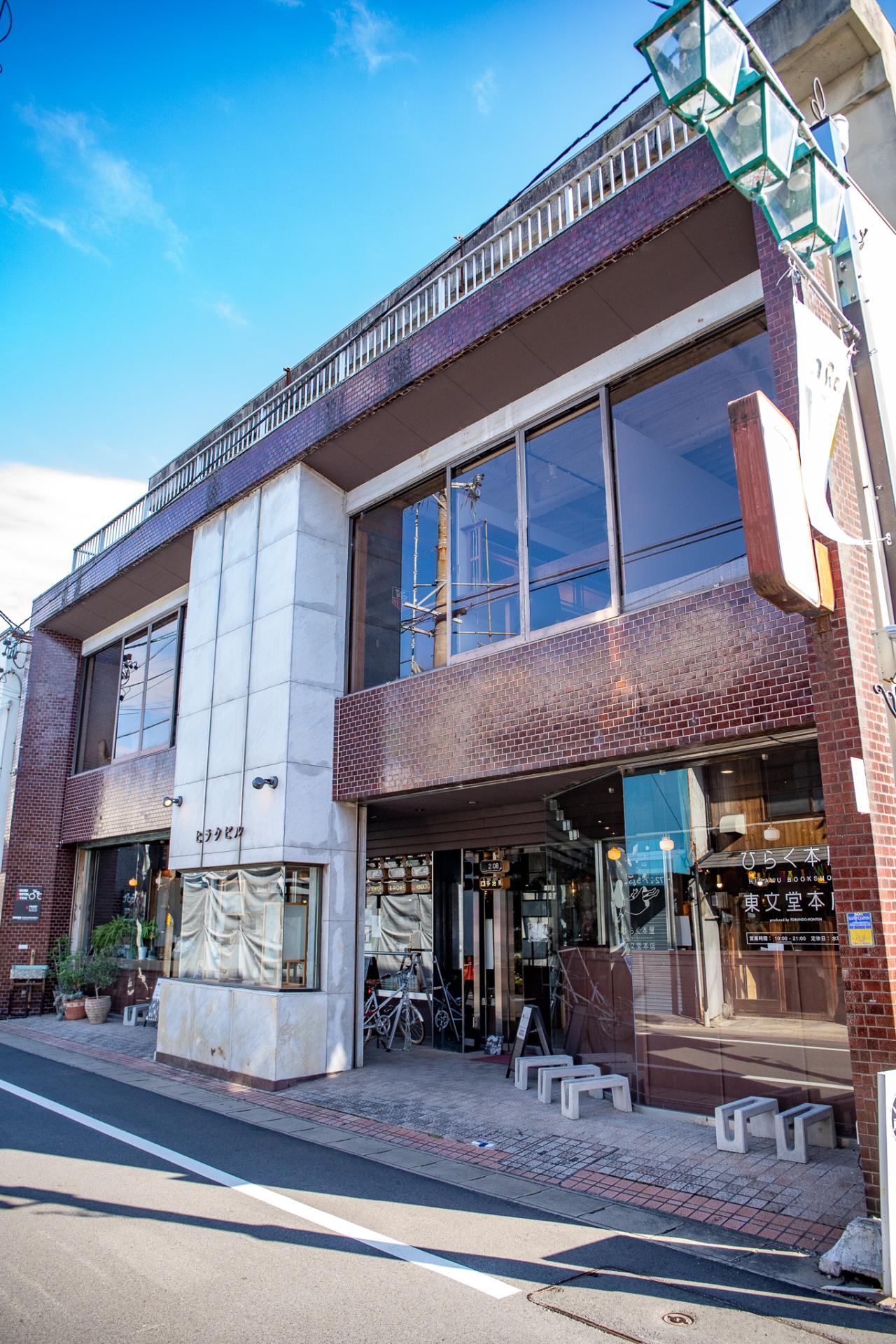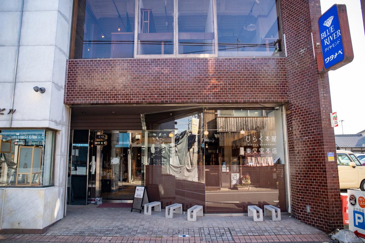 1300年以上の歴史をもつ美濃焼の産地として発展してきた多治見市。JR多治見駅の南口から約8分、「ながせ」と書かれたレトロなアーチをくぐった先に〈ひらく本屋 東文堂本店〉はある。以前は〈東文堂本店〉という屋号で、駅前の商業ビルにお店を構えていた。駅南口エリアの再開発で商業ビルが建て替えられるのを機に、2019年〈ながせ通り商店街〉へ移転。「まちと関わり合いながら、みんなの可能性の扉をひらく本屋」をコンセプトに、新たなスタートを切った。本屋のある〈ヒラクビル〉には、レンタルルームやシェアオフィスのほか、カフェバーも入居。購入前の本をカフェバーに持ち込んで読みながら飲食をしたり、テイクアウトしたドリンクを本屋に持ち込んで立ち読み(またはソファで座り読み)したり、思い思いの過ごし方を楽しむことができる。