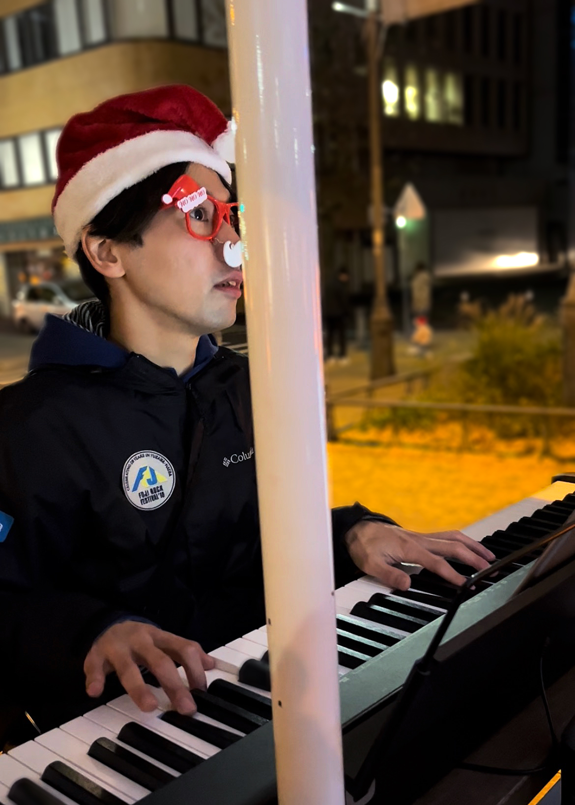 12月はイルミネーションシーズンで、横浜の街も美しくライトアップされ見どころ満載。トウヤマさんに街の名所をユーモアを交えて楽しく紹介していただきながら、力をあわせて進んでいく。10分もすると普段運動不足の脚は徐々に重くなり、コートも必要ないほどに暑く、息もあがってきた。普段歩いていて平坦に思っていた道も、意外にも上り坂になっていたり下り坂になっていたりで、思っていたよりも…いや、かなりハードな運動だ。
