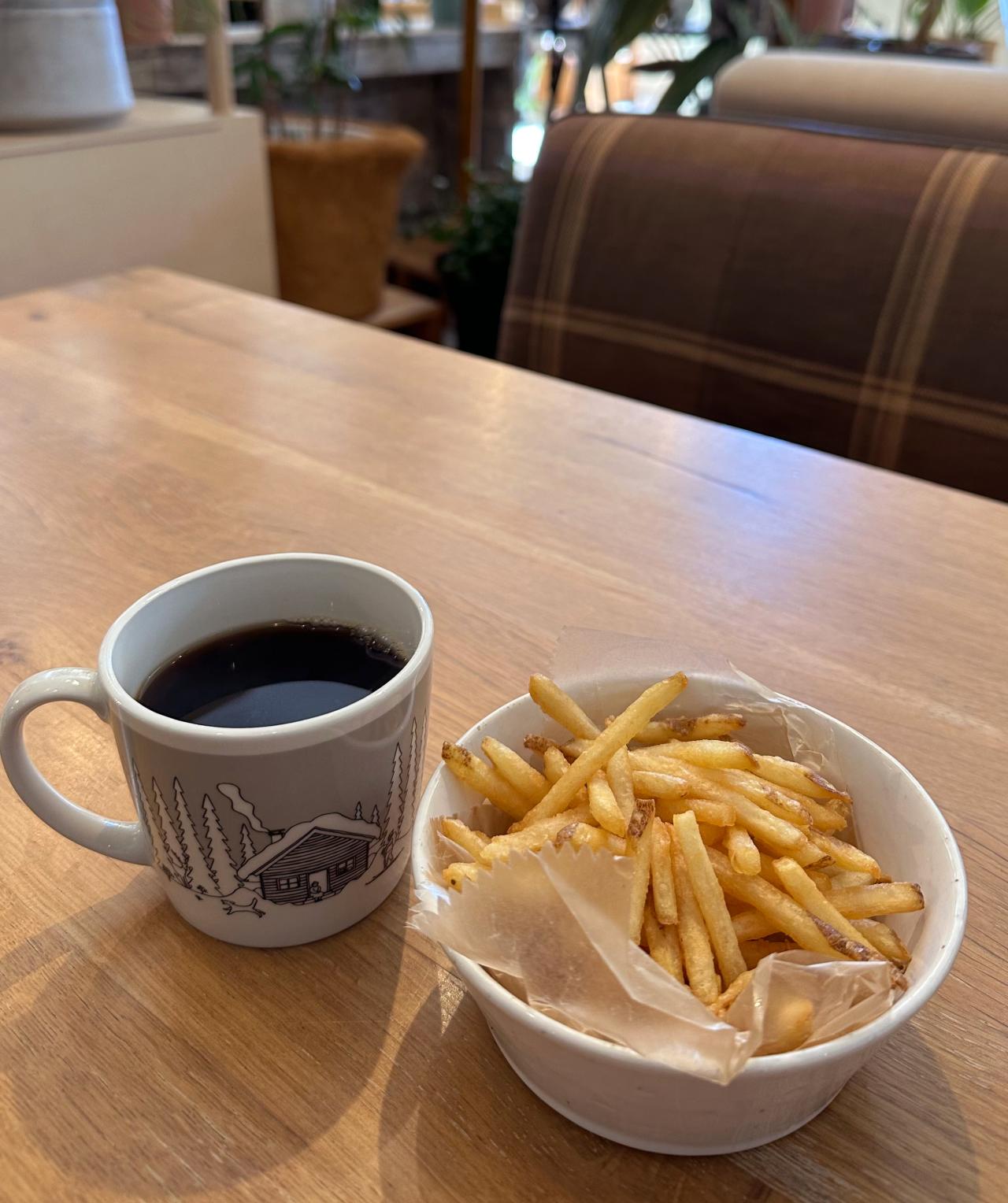 “ゆっくり過ごされる方におすすめ”と書かれていたのでポテトS +ドリンクのAセットもあわせて注文。平日限定でドリンクおかわり無料なんです。のんびり過ごしたい日に1人でも、友人とでも訪れたくなる素敵なカフェでした。