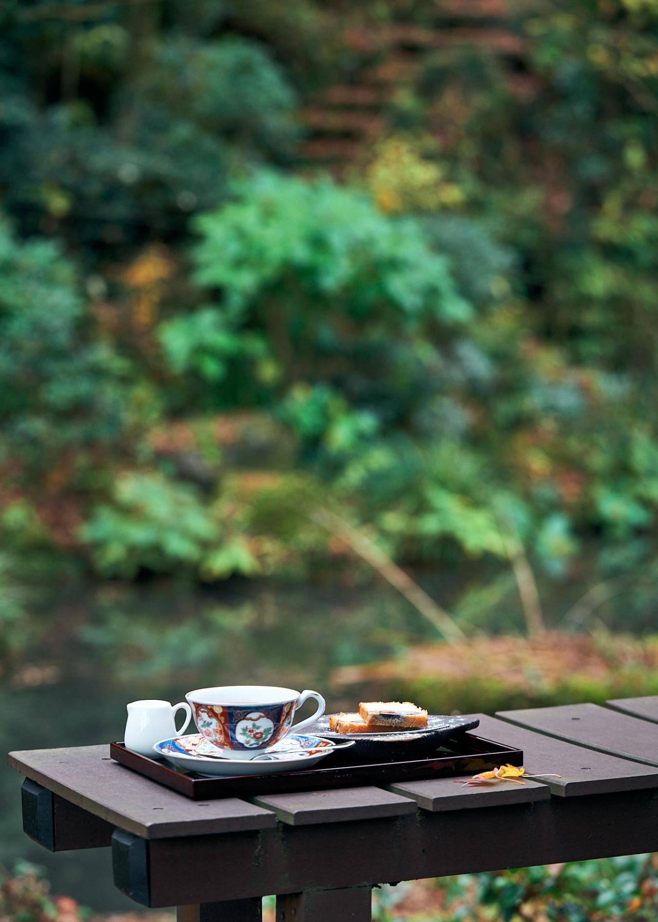 〈岡田美術館〉は、日本、中国、韓国などアジアの陶磁器や、日本の屏風・襖絵・掛け軸を中心に常時約450点の美術品を展示している。中でも陶磁器のラインナップは壮観で、器好きはもちろん、インスピレーションを求めてやってくるアーティストやクリエイターも少なくないという。お店で使われている器も趣のあるものが多く、お茶の時間は有田焼のティーカップとともに、ゆったりと過ごそう。