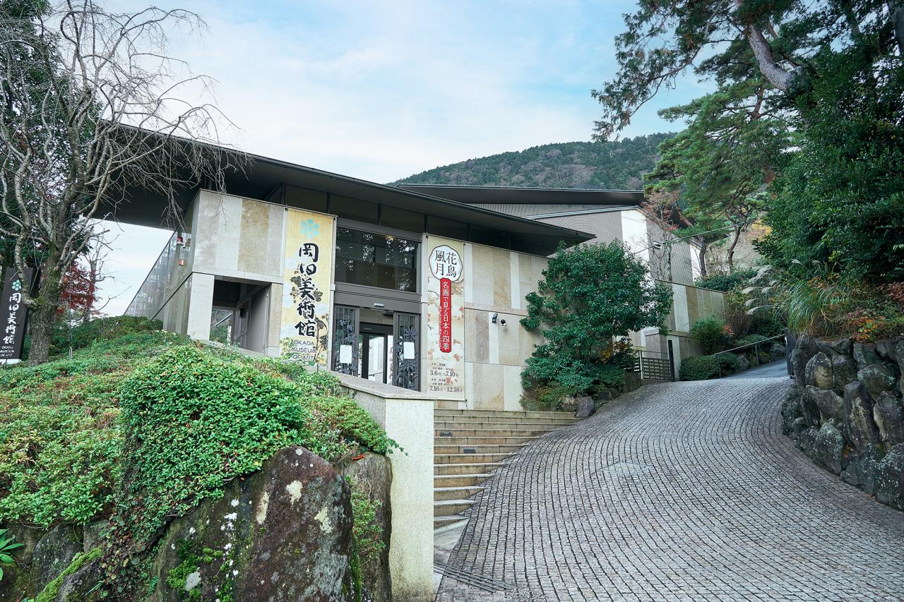 箱根湯本駅からバスで山道を進んで20分ほど、小涌谷エリアに入る。幾筋もの滝が糸のように流れる「千条(ちすじ)の滝」へのハイキングコースでも有名な、自然豊かな土地だ。ここの代表的なスポットは「岡田美術館」。勾配を生かした5層の建物の中には、東洋・日本の陶磁器や絵画などの美術品が常時約450点展示されている。