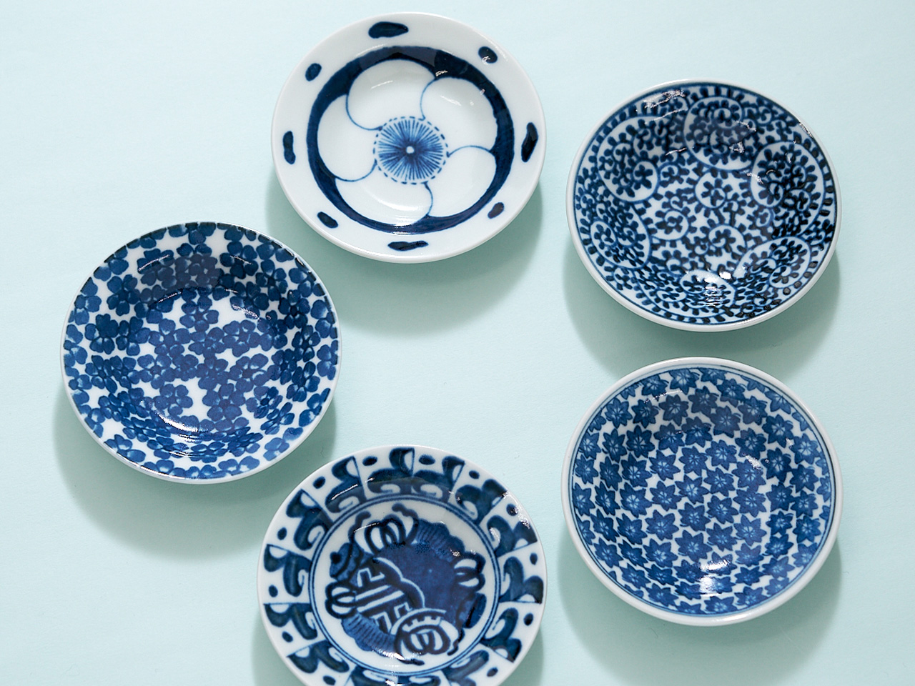 同じく、小皿や大鉢などさまざまなサイズの作品を、同じ大きさの豆皿に落とし込んだものも。蕎麦猪口や豆皿は、食器としても小物入れとしても使い方いろいろ。昔の人が愛用した器を、今のライフスタイルにも取り入れてみよう。