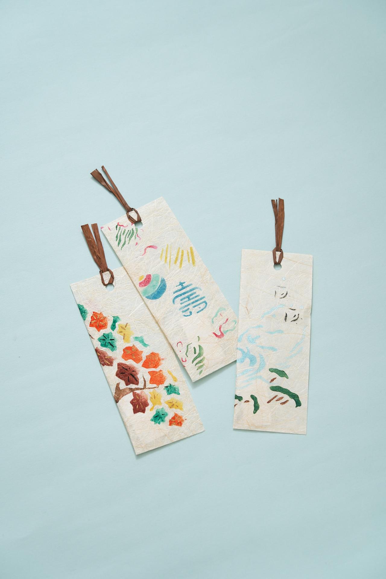 同じように、器や掛け軸などの絵の一部を配したしおりも他にないデザインだ。京都の工房に依頼して作成したお香入で、手触りや香りなど五感で楽しめる。