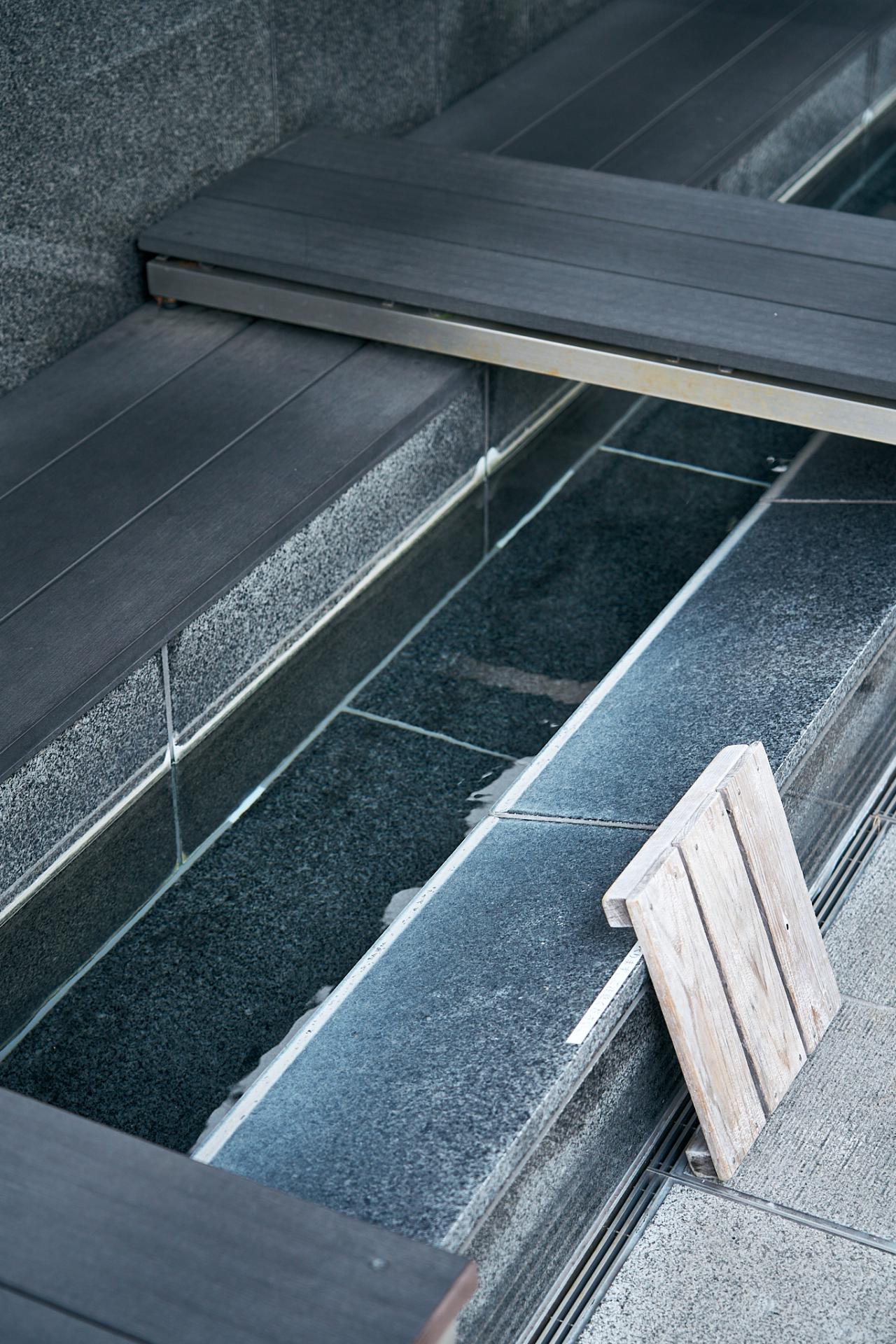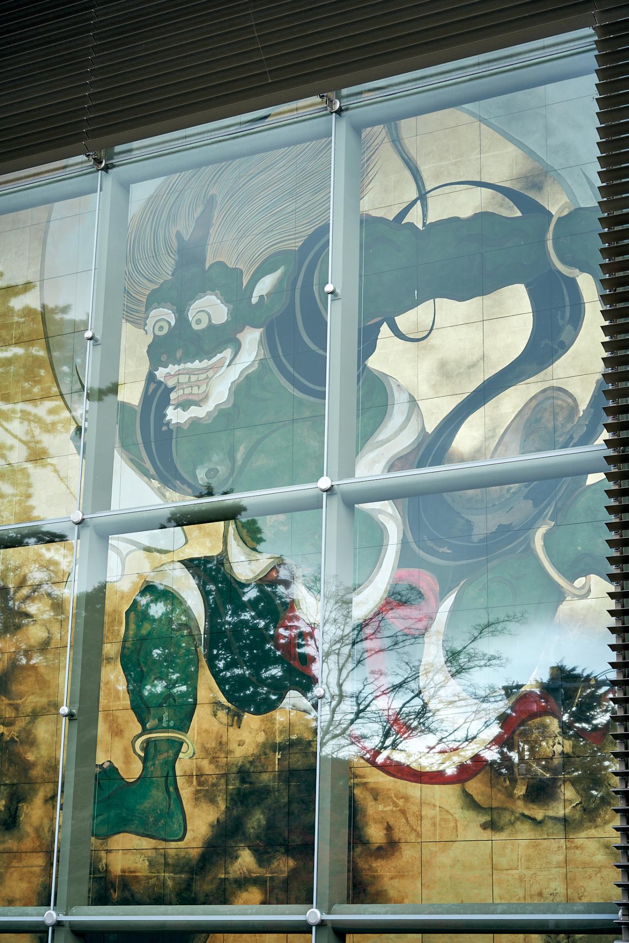 「岡田美術館」は絵画の収蔵品でも注目されている。館内に入る前にまず目を引くのが、琳派の影響を受けて作品を作る日本画家・福井江太郎による風神・雷神の大壁画「風・刻(かぜ・とき)」。ガラスに映った空の雲が絵画に被さり、移り変わる景色と共にずっと眺めていたくなる。作品の前には、源泉かけながしの足湯もあり、到着したらまずここで旅の疲れを癒したい。