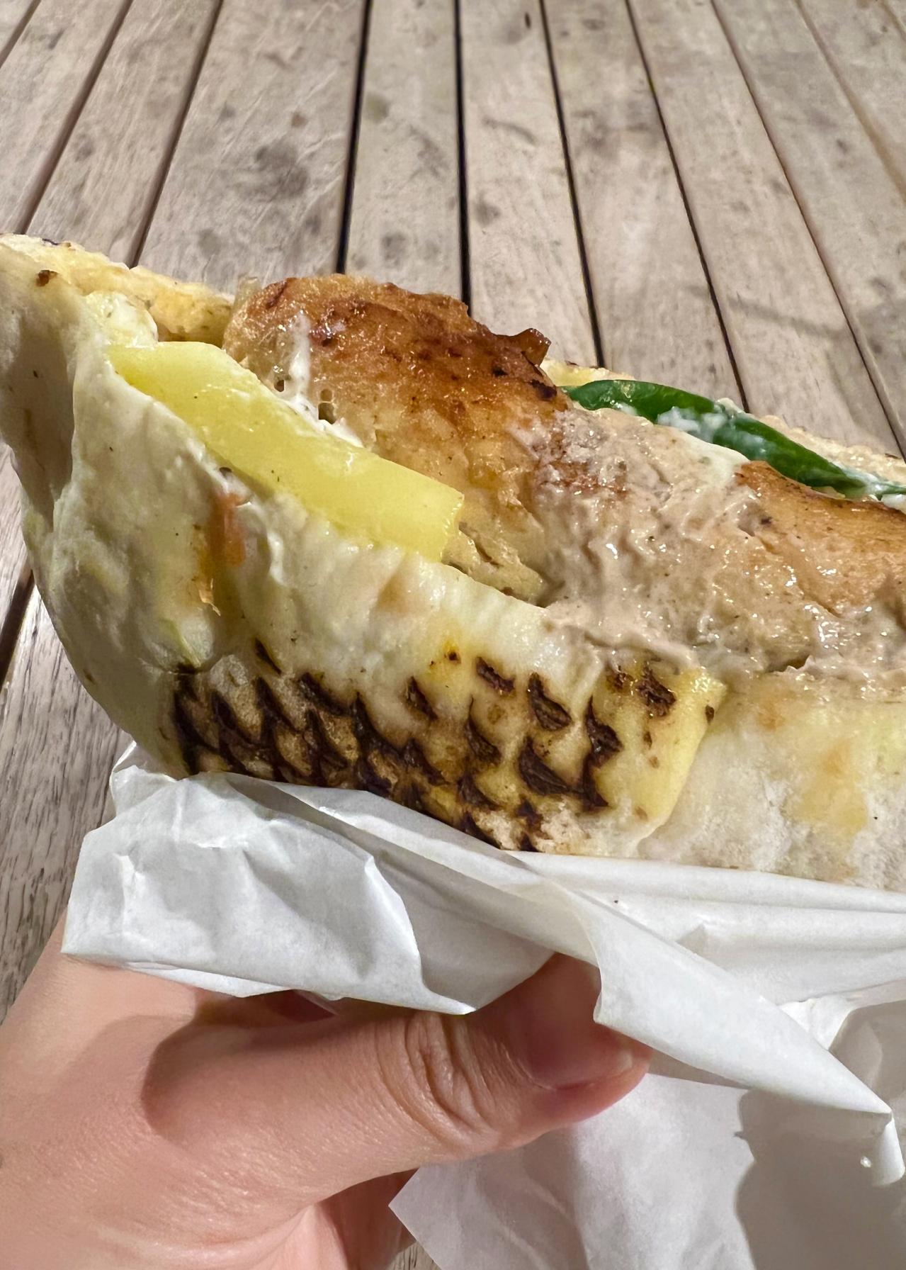 これがまた、本当に美味しい。サクサクのフライドオニオンのおかげでスナックのようなジャンク感もあるけれど意外にもさっぱりしているのは、かかっている3種類のソースの酸味とスパイシーさのバランスの良さのおかげでしょうか。チキンもたっぷり入っていてこれだけでもかなりのボリュームなので、誰かとシェアして食べるのがおすすめかも。