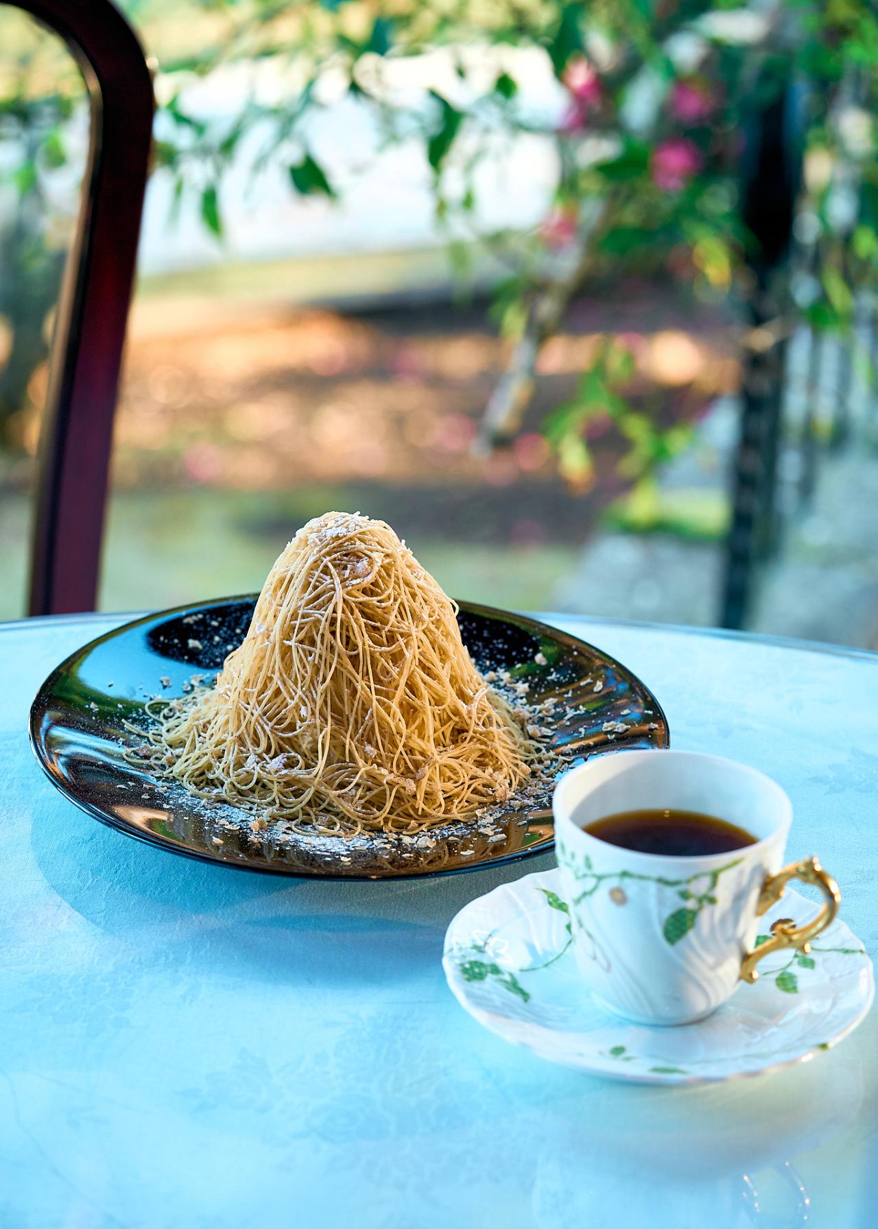 しぼりたてモンブランはコーヒー付きで1,780円。まぶしたパウダーは栗を削ったもの。