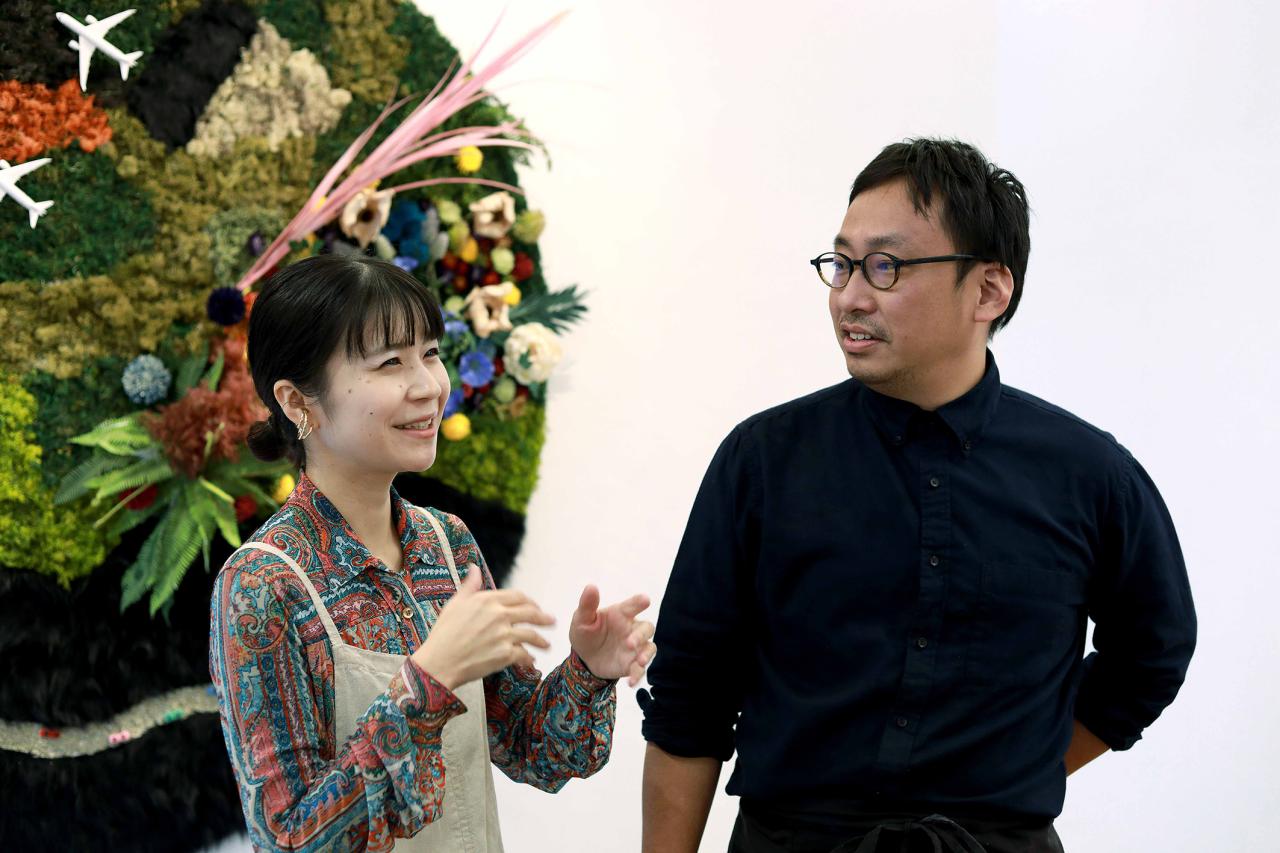 取材日の少し前まで展示されていたアーティスト・野田幸江さんの作品(現在は終了)。野田さんはオープン当初から店内の生け込みを毎月担当している。「彼女は、ちょっと本当に天才なんです」