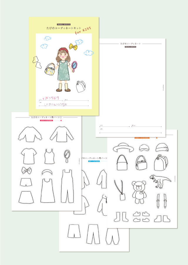 今回は旅のコーディネートキットのキッズ版です。子どもたちと一緒に色を塗ったり、組み合わせを考えたりして、遊びながら旅の準備をしてみませんか。