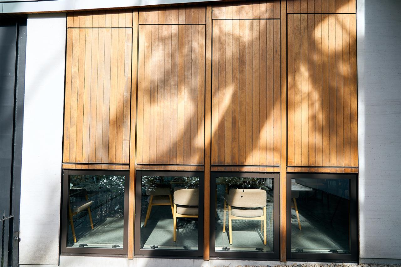 1ヶ月前からの予約ですぐに埋まってしまうというのがコーナーにある席。自然の中にいるような感覚で、穏やかな時を過ごせそう。桜や新緑の時期には、心してリザベーションを。
