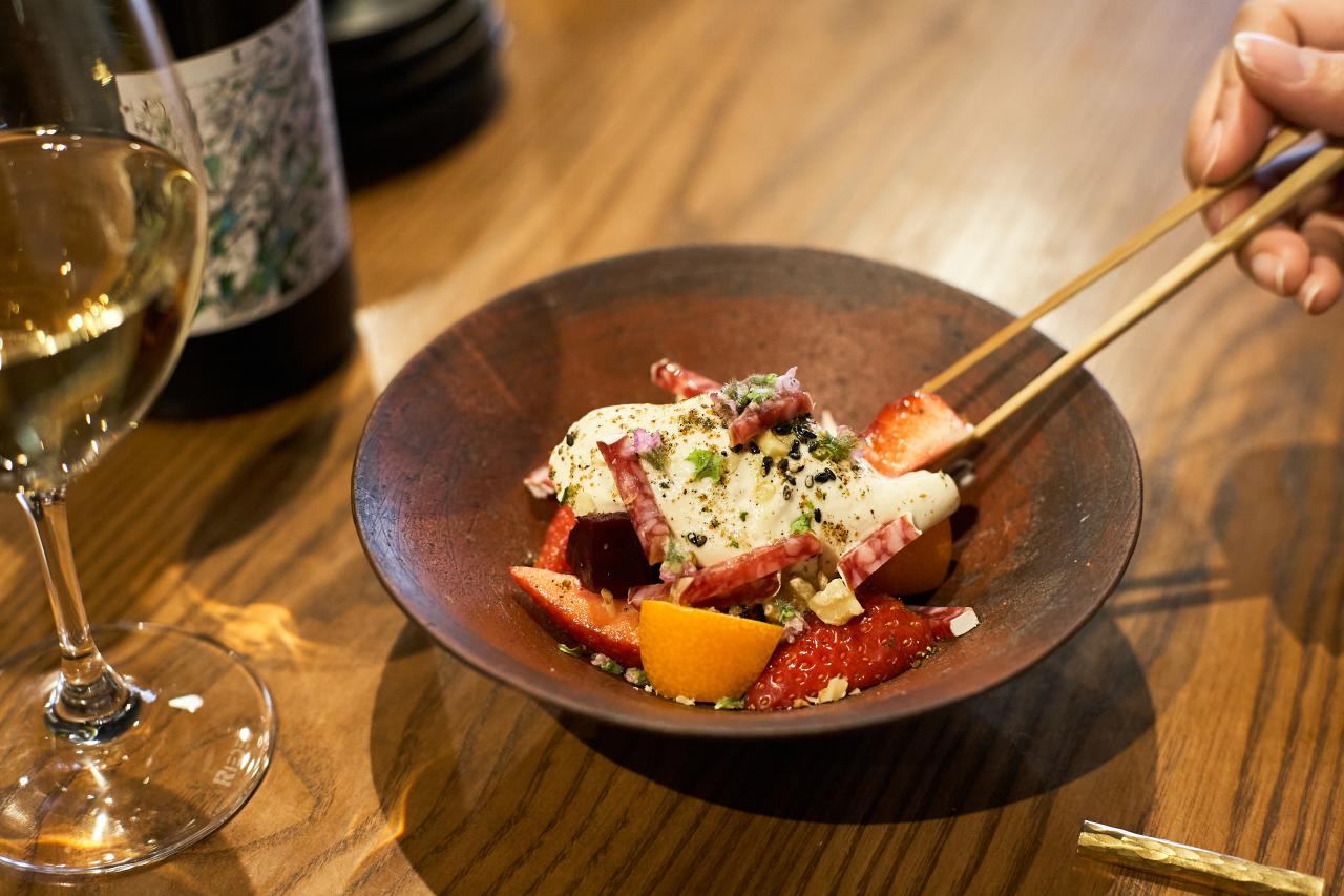 2020年にオープンした〈To.〉は、イタリアのエッセンスを加えた創作料理を提供する居酒屋。人気イタリアン〈fudo(フウド)〉の姉妹店で、オープン当初から注目を浴びていたお店だ。コンセプトは「人と人がつながる場所」。まるで友人宅に招かれたかのようなアットホームな雰囲気で、女性ひとりでも入りやすい居心地の良い空間が魅力的。カウンター席に座って目の前にあるメニューを見ると、気になる料理がたくさん! 選び切れずに迷っていると、吉田さんがおすすめの料理を紹介してくれた。