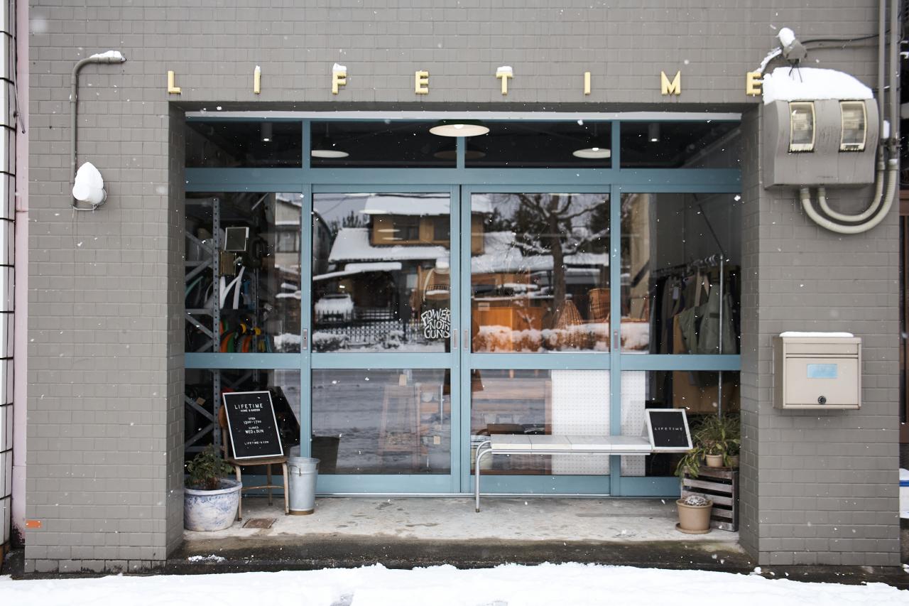 入口には〈LIFETIME(ライフタイム)〉と書かれたボードがある。そっと覗き込むと、おしゃれなガーデニング用品が見えた。気になって入ってみることに。〈LIFETIME〉はガーデンツールや日用品などの輸入雑貨を扱うセレクトショップ。と思いきやアパレル用品、インテリア雑貨など、お店のなかはさまざまなジャンルの商品であふれ返っていた。奥へ進んでいくと、次々と発見があって、見て回るだけでも楽しい気分に。