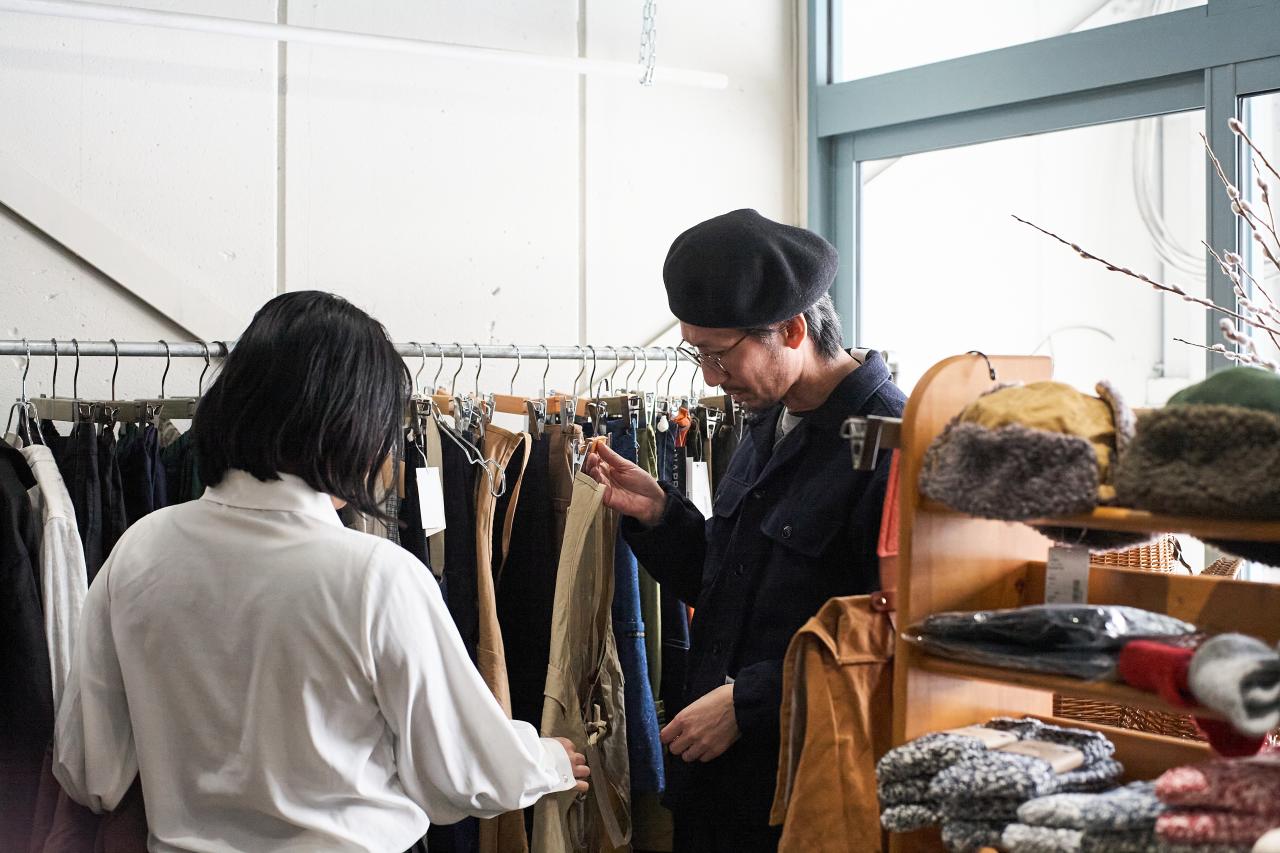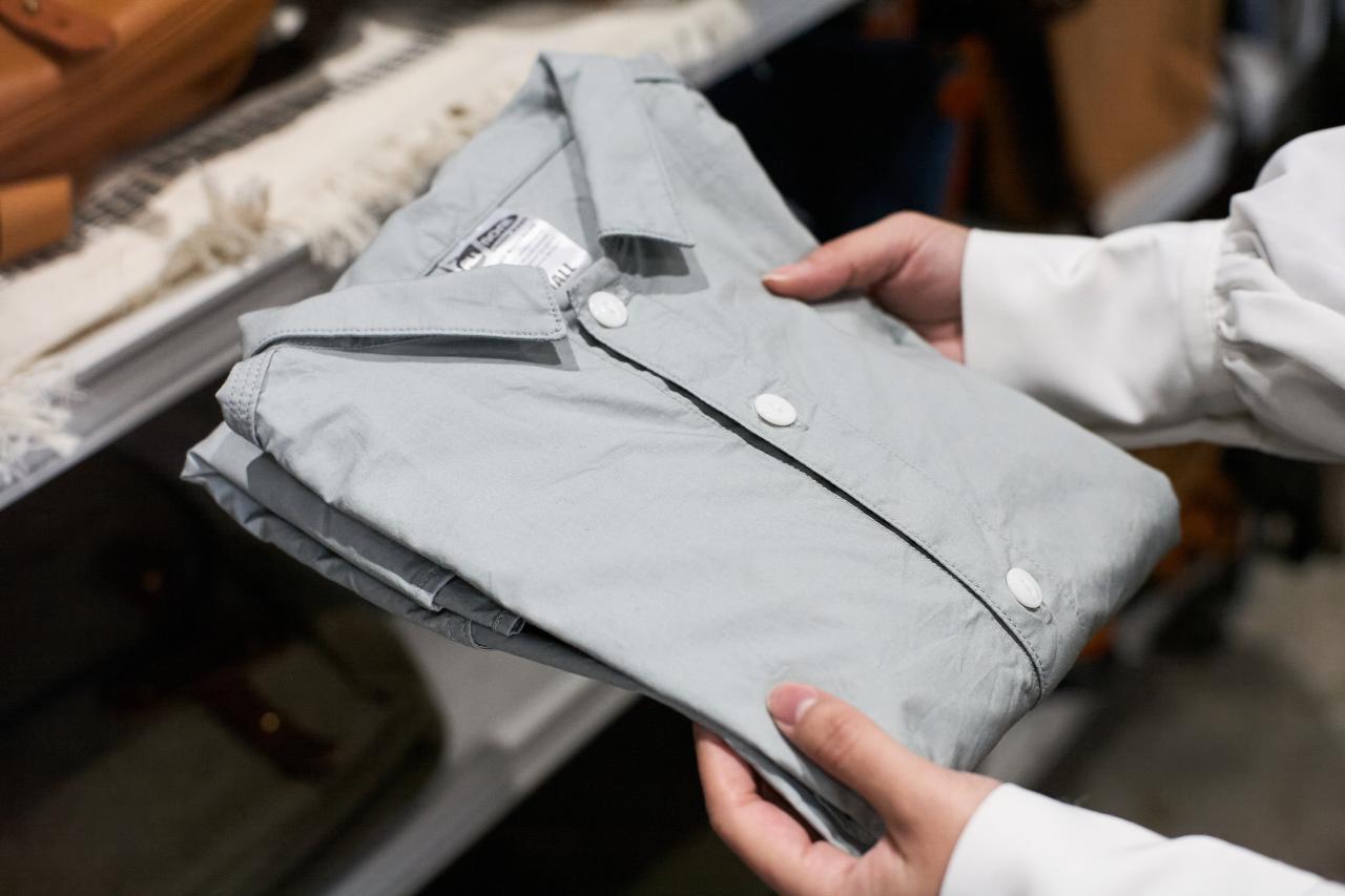「この『スモック・クラウド』というシャツは、子供が着ているスモックの大人版が欲しいと思ったことをきっかけにつくったんです」と話す説田さん。その発想もユニークだ。海外の生活を経て、人生の価値観が変わったとも話してくれた。改めて日本の好きなところを再発見したという。古くから繊維の街として名高い岡山のデニム生地や帆布のエプロンも豊富だ。楽しそうに商品の良さを語る説田さんに接客してもらったら、買い物の時間がより一層充実した気がする。