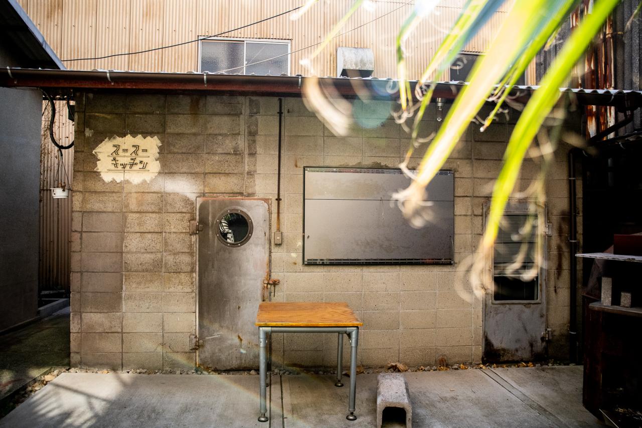 1階は天井が高いので(クレーンも動きます!)大型作品の制作に適してそうです。個室のスタジオもありました。各スペースでそれぞれのアーティストさんの個性が出ていて面白いのですが、みなさん作り手なので、作業場に必要な什器や床なども本人が作ってしまうこともあるそう。何気なく壁にあるホワイトボードの絵にまで感心してしまいます。中庭のような場所にある「スースーキッチン」は稼働するのはこれからだそうですが、フードアーティストの方たちが使えるようなスペース。立派なキッチン、屋台のように開く窓など、至れり尽くせりの設備で、今後どんなことが行われるのか楽しみです。