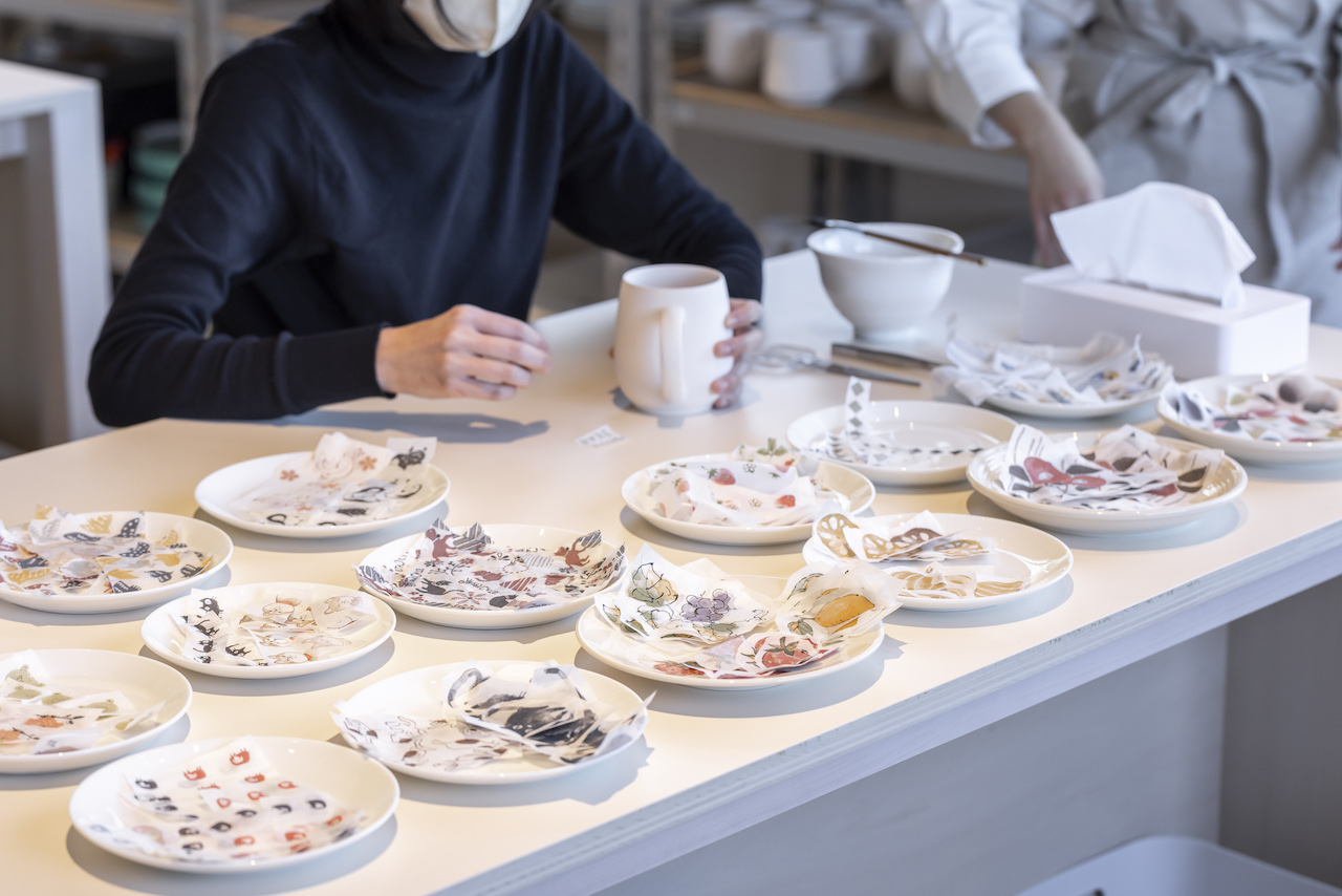 ワークショップで陶器の絵付けを体験