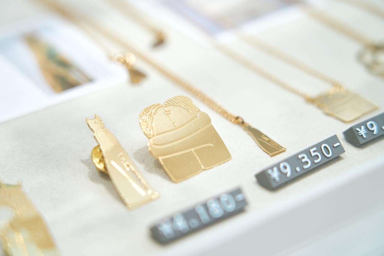 ジュエリーのように楽しめるものも。こちらはフランスで立ち上げられたブランド「titlee(ティトリー)」と美術館がコラボレーションしてできたもの。美術館のコレションの中で人気の、コンスタンティン・ブランクーシの《接吻》も、繊細なアクセサリーになればファッションの一部に。