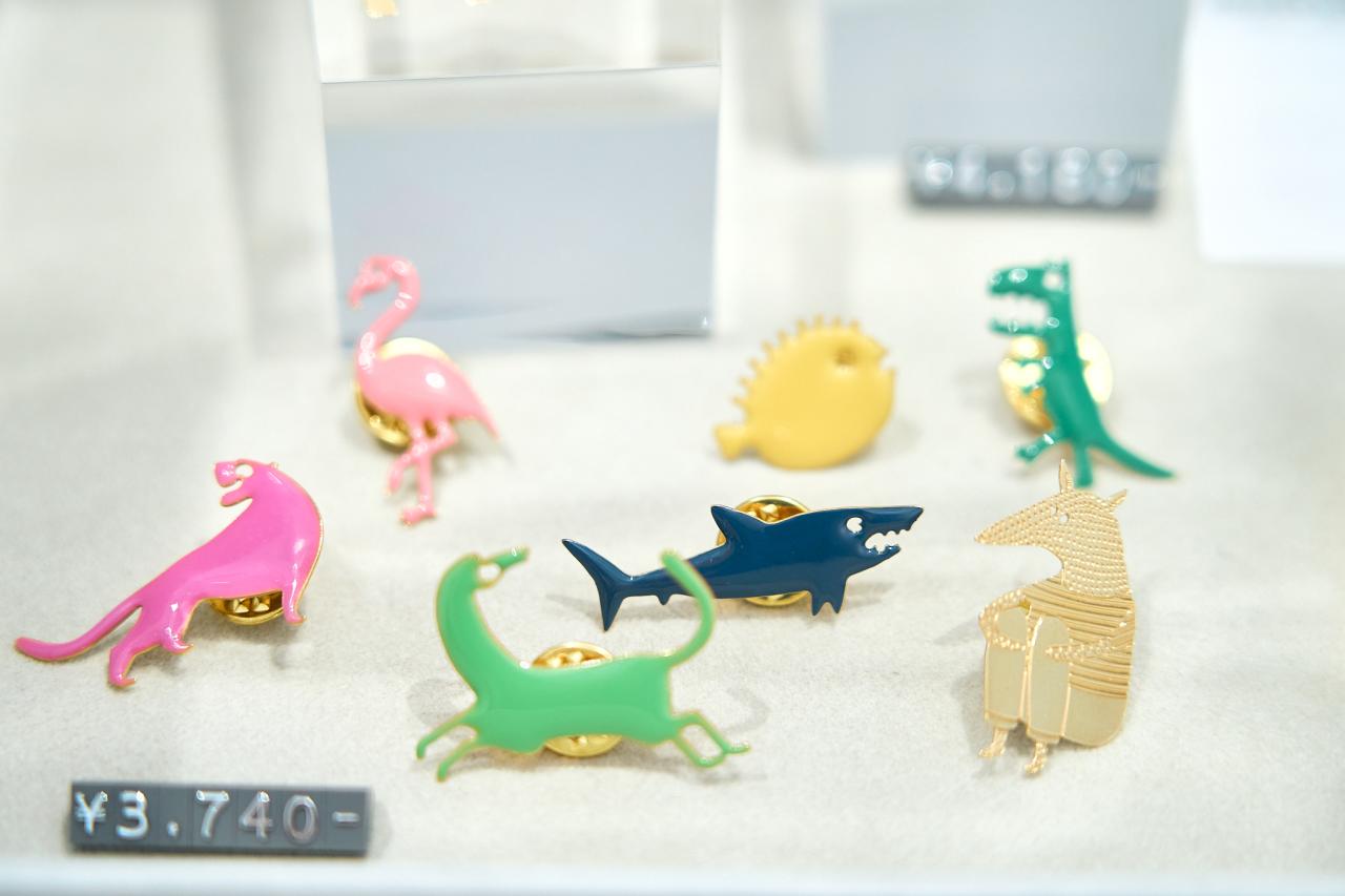 スウェットと同じ作品もピンバッチになればまた違う印象で、ポップな色合いに。1点でも華やかだからジャケットの襟元を飾るのもよし、トートバッグにたくさんつけてコラージュのように楽しむのもよし。