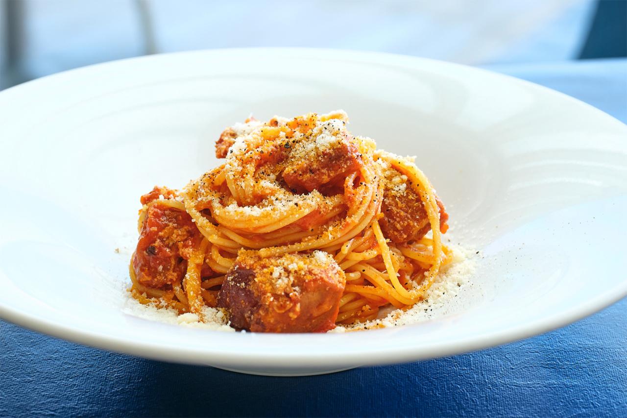 パスタ・ピッツァは8種から選ぶことができ、今回はベーコンと新玉ねぎのアマトリチャーナをセレクト。ゴロっと大きめにカットされたベーコンはジューシーで、トマトソースがよく絡んだスパゲッティーニはツルツルと食べやすい。毎月1種、旬食材のメニューも選べるそうで、4月は春キャベツを使ったパスタが登場している。