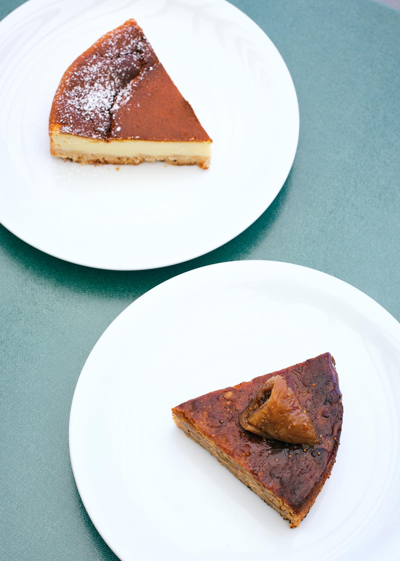 ドルチェは、コースにミニサイズでついていたチョコレートケーキやプリンのほかに6品ほど用意されている。イチジクとくるみのケーキには、さくらんぼが原料のリキュール、マラスキーノで柔らかく煮込んだドライイチジクが使われていて、香り高く優しい味わい。チーズケーキは、横須賀美術館の企画に合わせて作った期間限定の品が定番メニューになったものだそう。ニューヨーク風で、しっかりと濃厚な生地がコーヒーに合う。