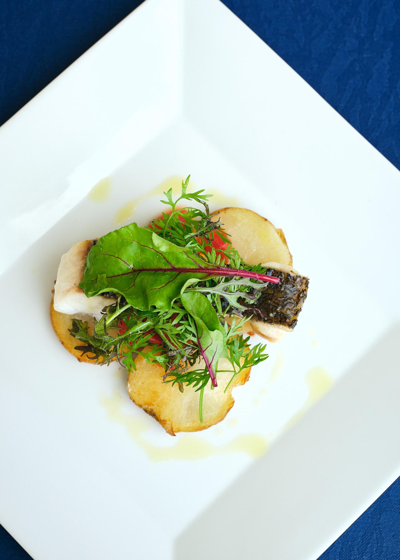 「都心にある『リストランテ アクアパッツァ』とは違い、店の近くに生産者さんがいるのがとても魅力。ランチとディナーの合間に農家を訪ねて、食材を仕入れることもできるし、魚は自分の目で見て選んだものが使えます」とは、キッチンを任されるシェフの須貝恵介さん。「野菜は、同じ野菜でも農家さんによって味が違うんですよ。その食材自体の良さが伝わるように、手をかけすぎない調理法を考えています」。魚も季節によって獲れる種類も変われば、脂の乗り方も変わる。この土地ならではのおいしさが表現されている。