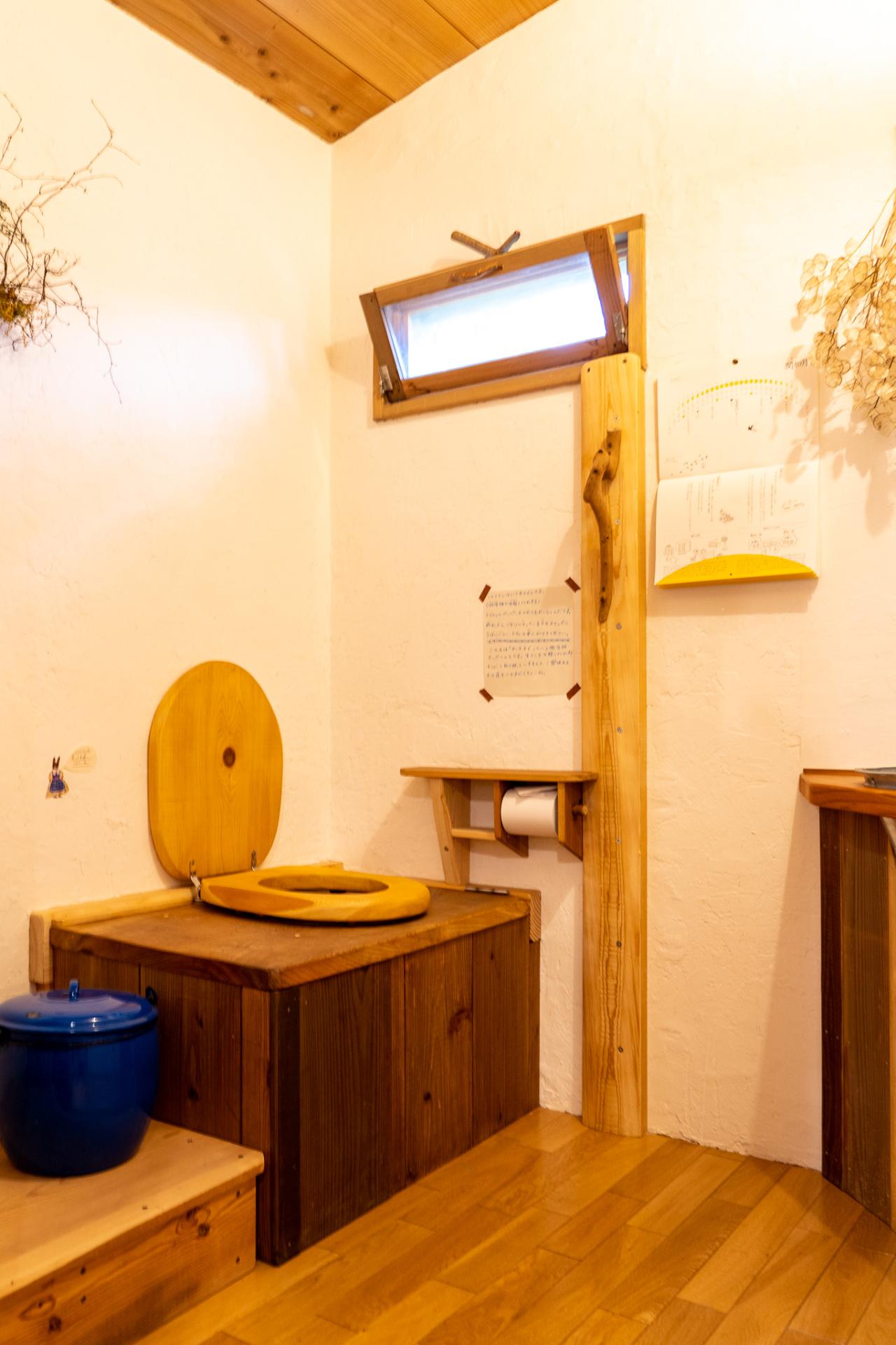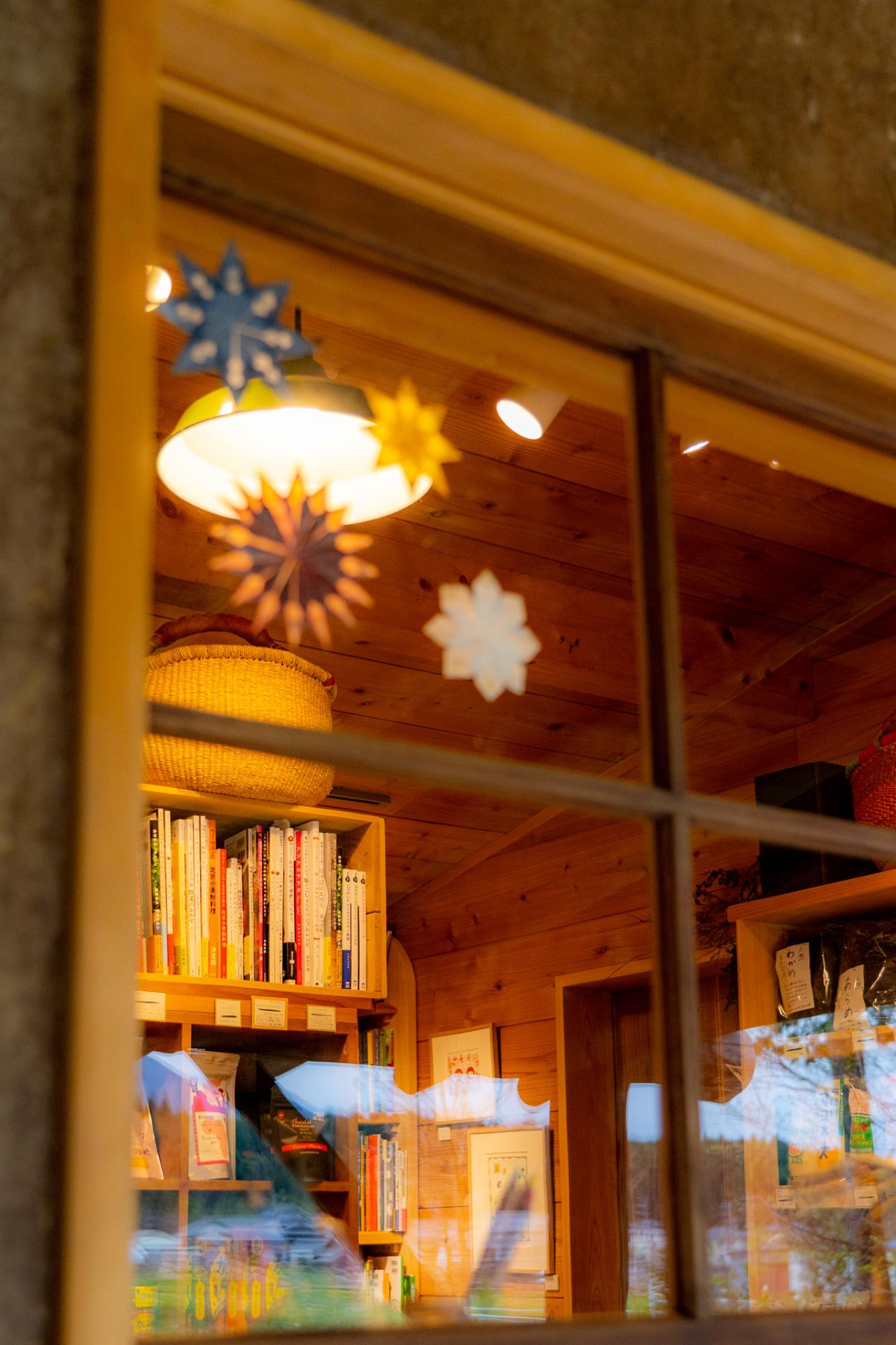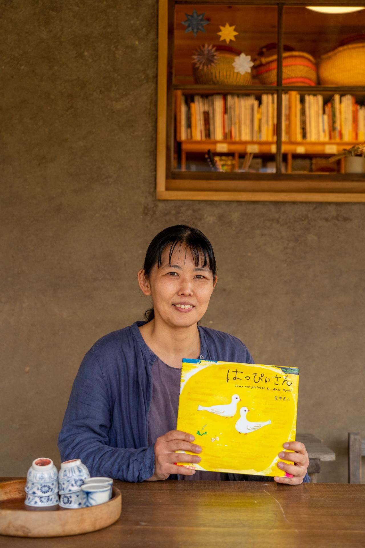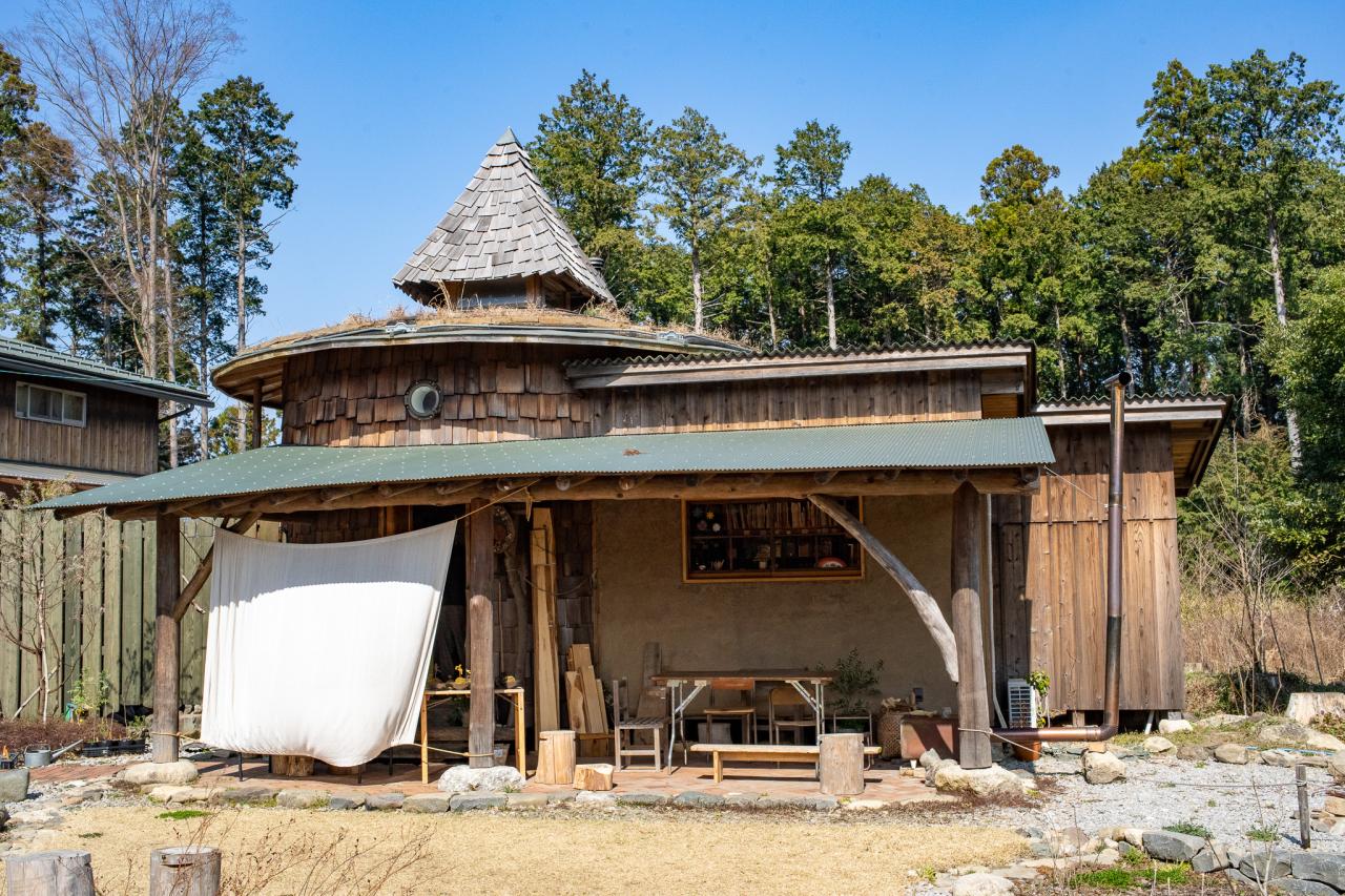 「夫が友人から、森の利用について相談されたことがきっかけでした。その森に家を建ててもよいと言ってもらったので、移住を決めました」。森の一部だった場所を開拓し、家とお店が完成するまで7年ほどかかったそう。「絵本の世界に出てくるような場所で、好きな絵本に出会える。そんなテーマでお店を建てました。私たちはパーマカルチャーの考え方を取り入れて暮らしているので、それをお店でも実践して体感してもらえたらと思っています」。基礎にコンクリートを使わない石場建て、板を重ねていくシダーシェイクのとんがり屋根や外壁、土壁、草屋根、バイオトイレなど、人と自然の共生を意識したパーマカルチャーの考え方が随所に見られる。どこか懐かしいような、それでいて非日常なような、まさに絵本の世界に触れられるような佇まい。店内に入ると、木材やハーブの香りも感じられ、心が落ち着く空間となっている。