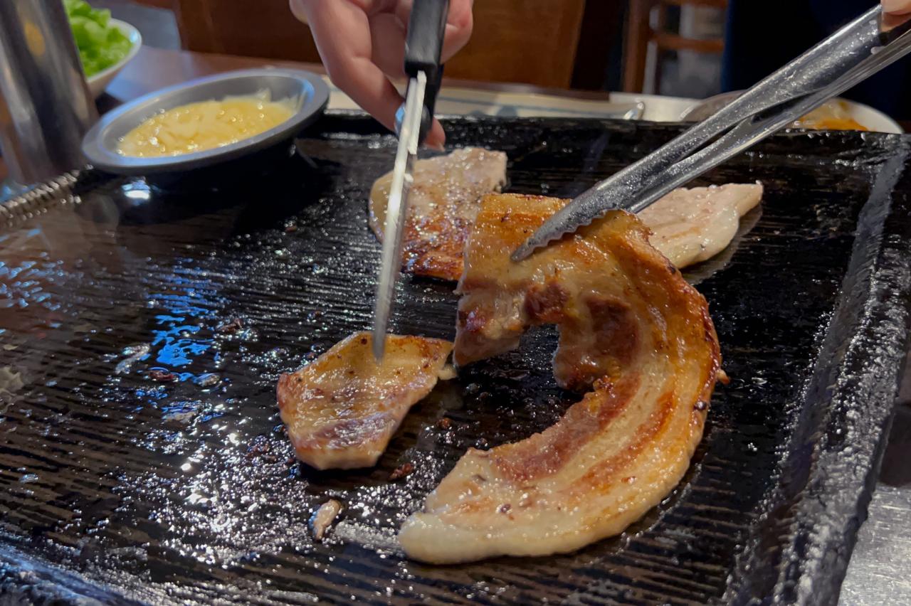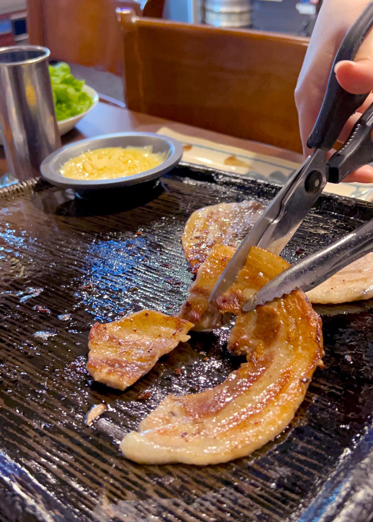 お店の一番の人気メニュー・サムギョプサルは自分で焼いていただきます。