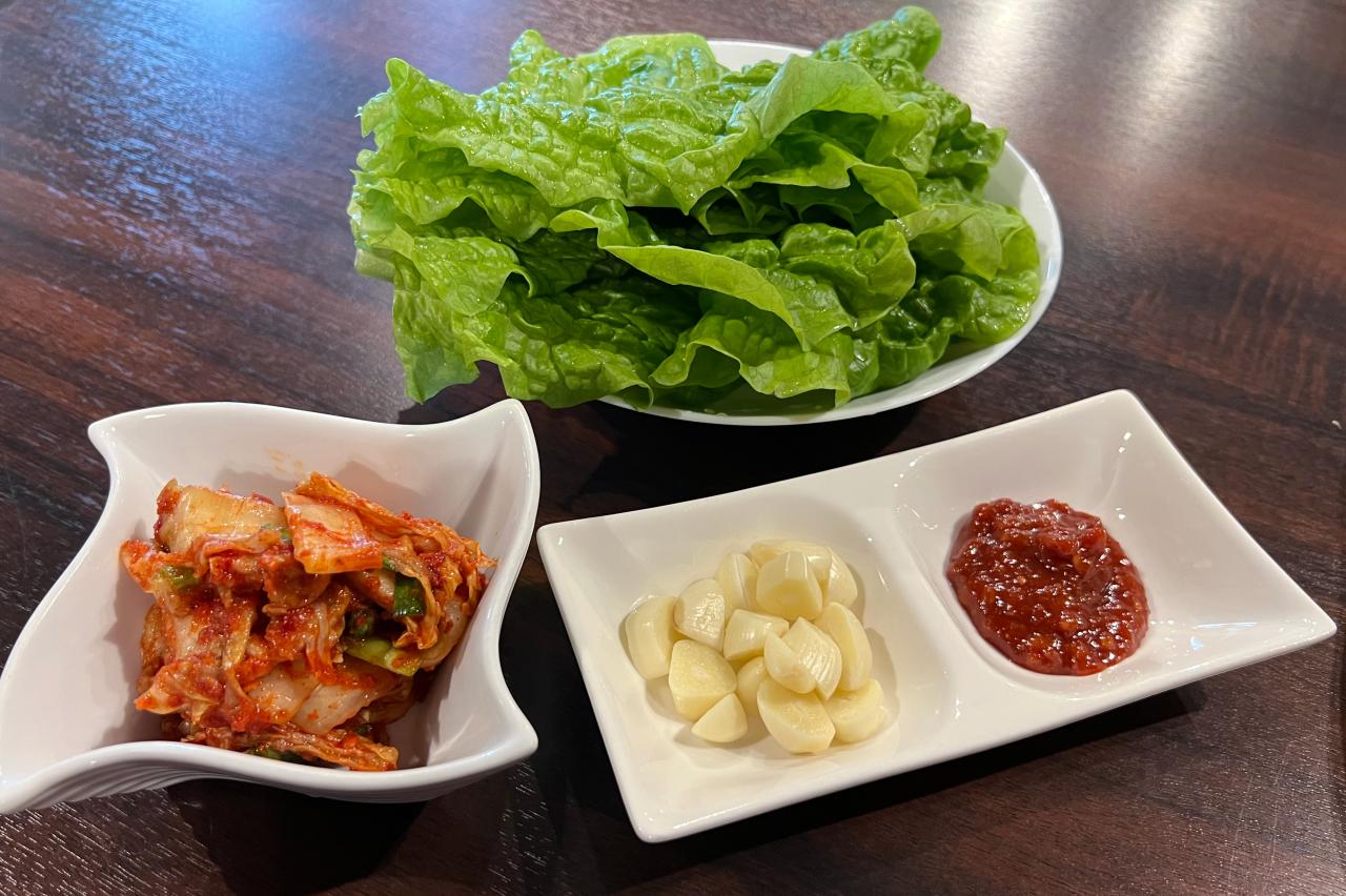 鉄板が斜めになっているので余分な脂は気になりません。包み野菜や薬味、キムチ、チーズなども一緒に注文しました。カリッと焼き上げたお肉に、とろっとしたチーズがたまりません。サンチュにキムチなどをのせて一緒に食べるもまた美味、、、。どんなトッピングでも美味しくいただけてしまうサムギョプサル、罪です。キンパは、ごま油の良い香りが食欲をそそります。たくあんやきゅうりがとってもいいアクセントでさっぱりと食べられ、チヂミやサムギョプサルをいただきつつも、結果全て完食。