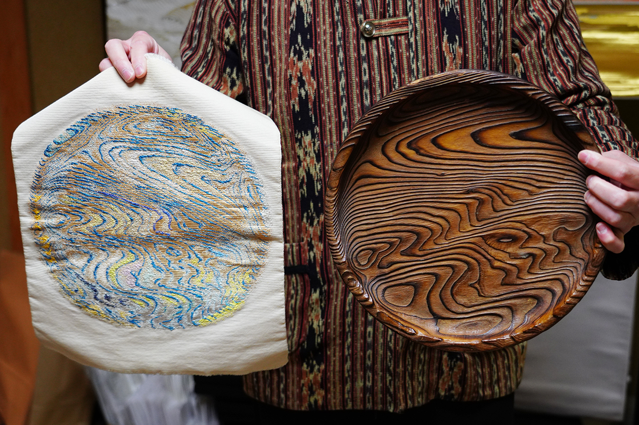 デザインの源はどこにあるのだろう。周さんに尋ねてみたところ、「旅先で得たインスピレーションをもとにすることもあれば、身近なものから着想を得る場合もあります」と言って見せてもらったのが丸盆。木目の美しさに心が惹かれたのだという。なにを美しいと思うか、感性の豊かさに憧れを抱く。