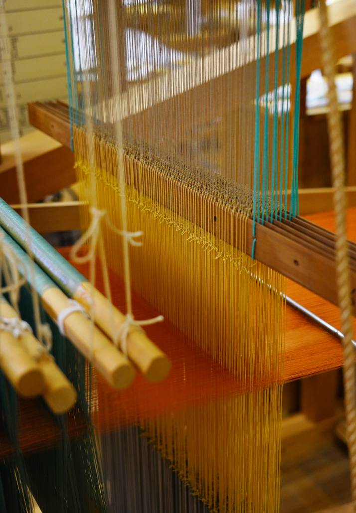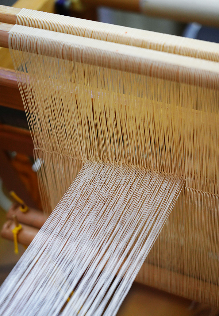 手足の力で織る高機は、職人の力加減やスピードによって織物の風合いが異なる。周さんによると、熟練の職人ほどリズミカルで心地の良い音を響かせながら仕上げていくのだとか。