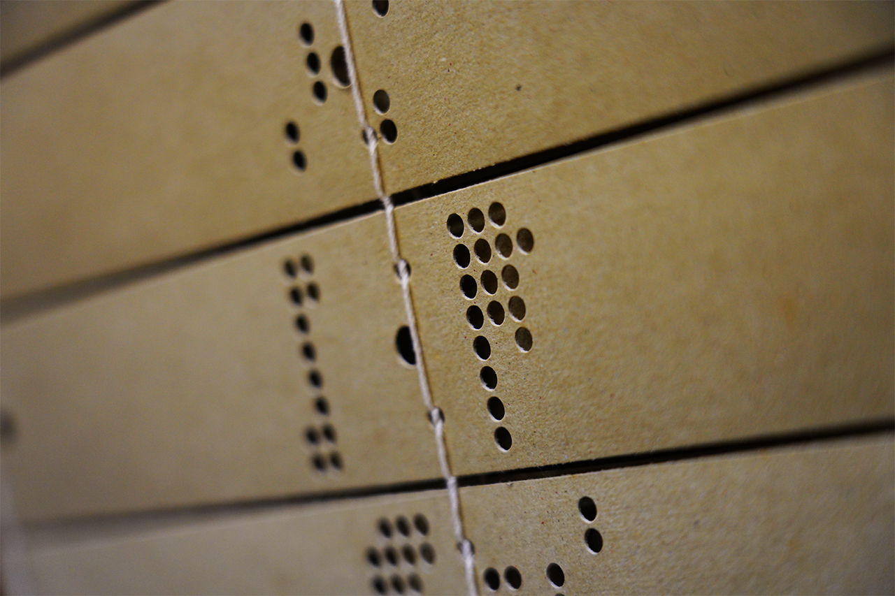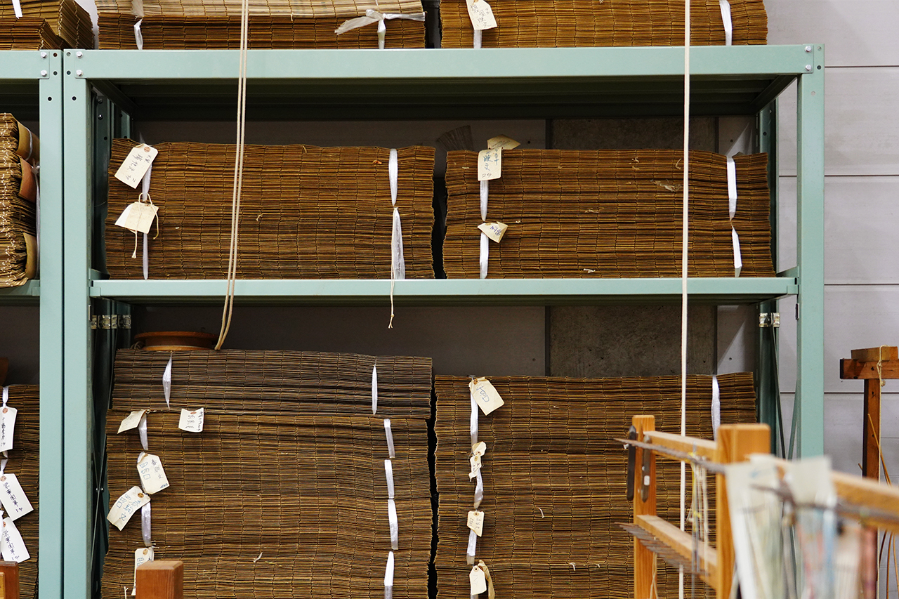 製織に使用する道具も見どころだ。明治にフランスからジャカード織機とともに伝わった紋紙(もんがみ)は、穴の配置で経糸の上げ下げを制御する。フロッピーディスクの登場以降は電子データ化されるケースが多くなったが、〈光峯錦織工房〉ではデータという不確かなものに頼らず、今でも大量の紋紙をストックしている。和紙が千年残るように、京都の伝統文化に携わる現場では紙への信頼が厚い。