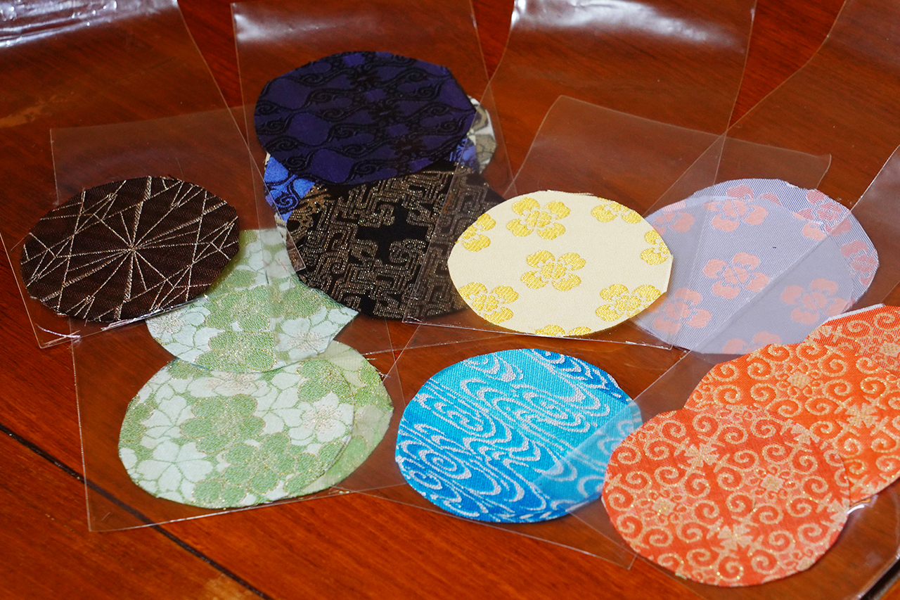 迷いながら、折り鶴をイメージしたという柄に決めた。ボンドで生地を接着し、金型にあわせて折り込む作業は小学校の図画工作を思い出す。親子で気軽に伝統文化に親しむ機会としてもおすすめだ。