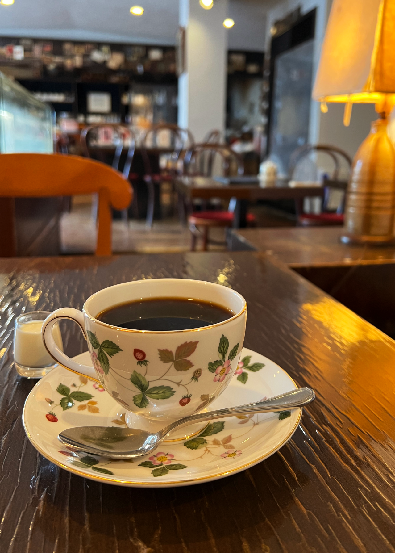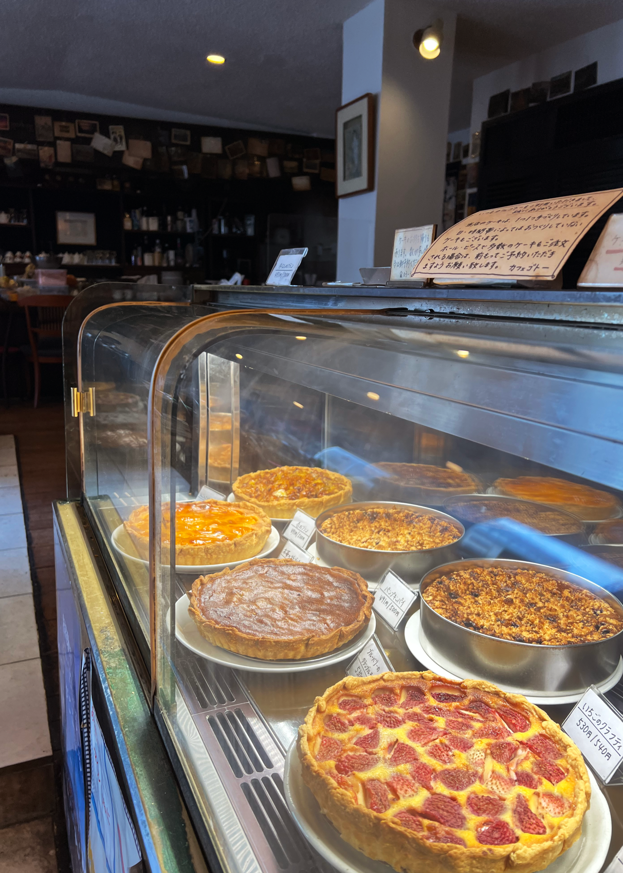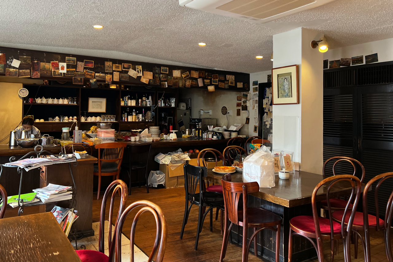 いつも学生さんでいっぱいの少し賑やかな店内も、日曜の朝はゆったりとした時間が流れます。コーヒーの豆を挽く音、ケーキを仕込む音、店内に流れるクラシックが心地よく、文庫本の一つでも持ってきて、読みたくなる感じ。現にスマホやPCを開くより、本を読んで過ごす学生さんが普段も多い印象です。私も学生時代にこちらのお店に出会って、こんな時間を過ごしてみたかったなあ、と過ぎ去った日々に思いを寄せます。後日、早稲田大学出身の友人に取材に伺ったことを話すと、すぐに「懐かしい!」と反応。「あの辺りは古いお店がなくなってきているから、まだ続いてくれているのがすごく嬉しい」。