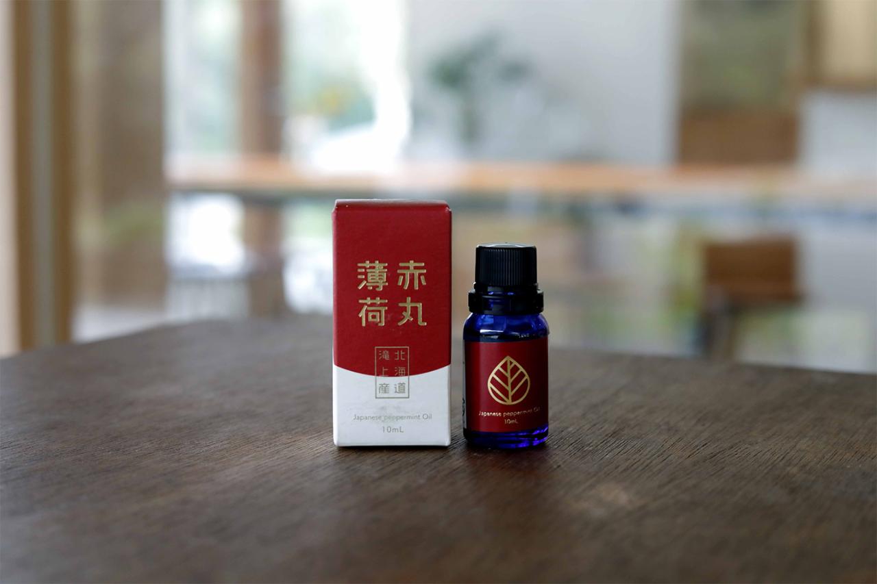 「父がお店を始めた時は食品だけを取り扱っていたんですが、いろいろやっていくうちに生活雑貨も扱うようになり、そのうち“線香も原料から自分たちで作りたい”となって。20年ほど前に、菊花せんこうの原料である除虫菊の栽培のために北海道に移住したんですね。その除虫菊の農場の隅っこに偶然生えていたのが、赤丸薄荷だったんです。最初見たとき、こんな真っ赤な茎の薄荷見たことないねって。それで北見ハッカ記念館の当時の館長さんに相談して調べてもらったら、“これはもう絶滅したと言われていた赤丸薄荷です”って。品種改良を全くされていない在来種の薄荷ですからとにかく大事に育ててくださいって言われてね。で、細かく株分けして少しずつ増やしてきたんです。いいものだからこれは商品化したいね、となって精油やジェルを作るようになって、いま6年目ですかね」