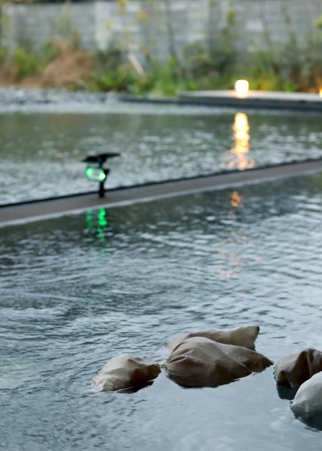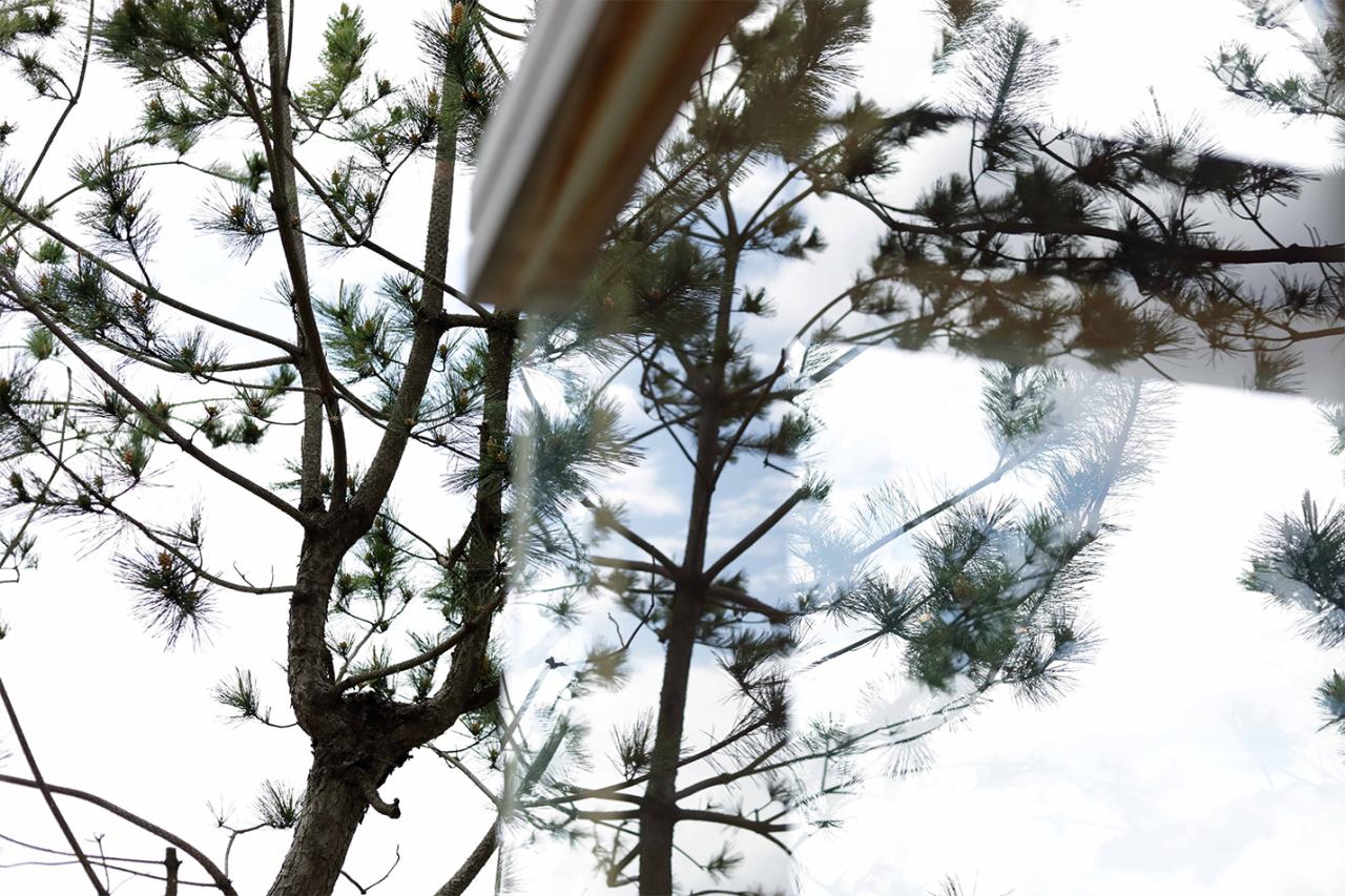 庭師の友人から譲り受けた黒松。後継者がいなくて閉じてしまった日本庭園から、“再生”の象徴として第二の木生を送るためにRINNEへやってきた。目の前の山に一目惚れした庭師さんが山に入って見つけてきた大きな石や、自生のシダなどに囲まれている。