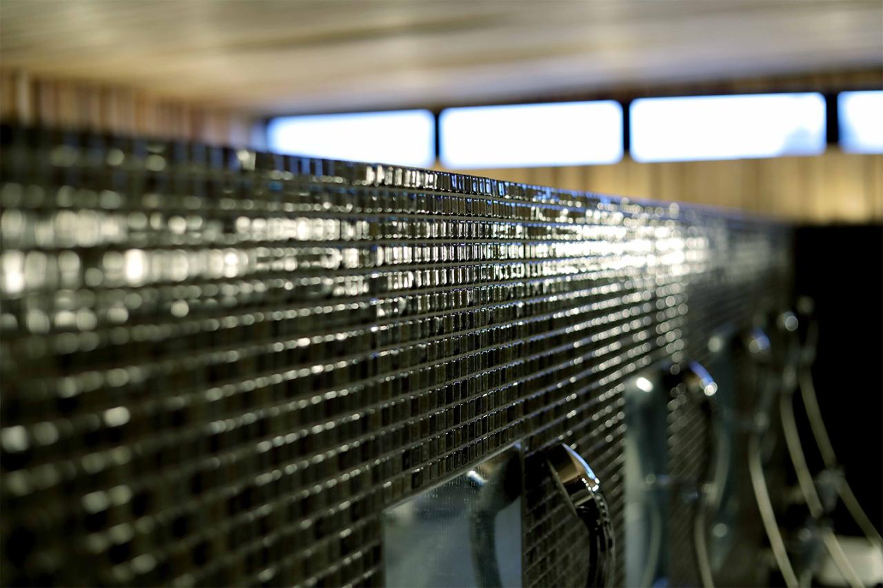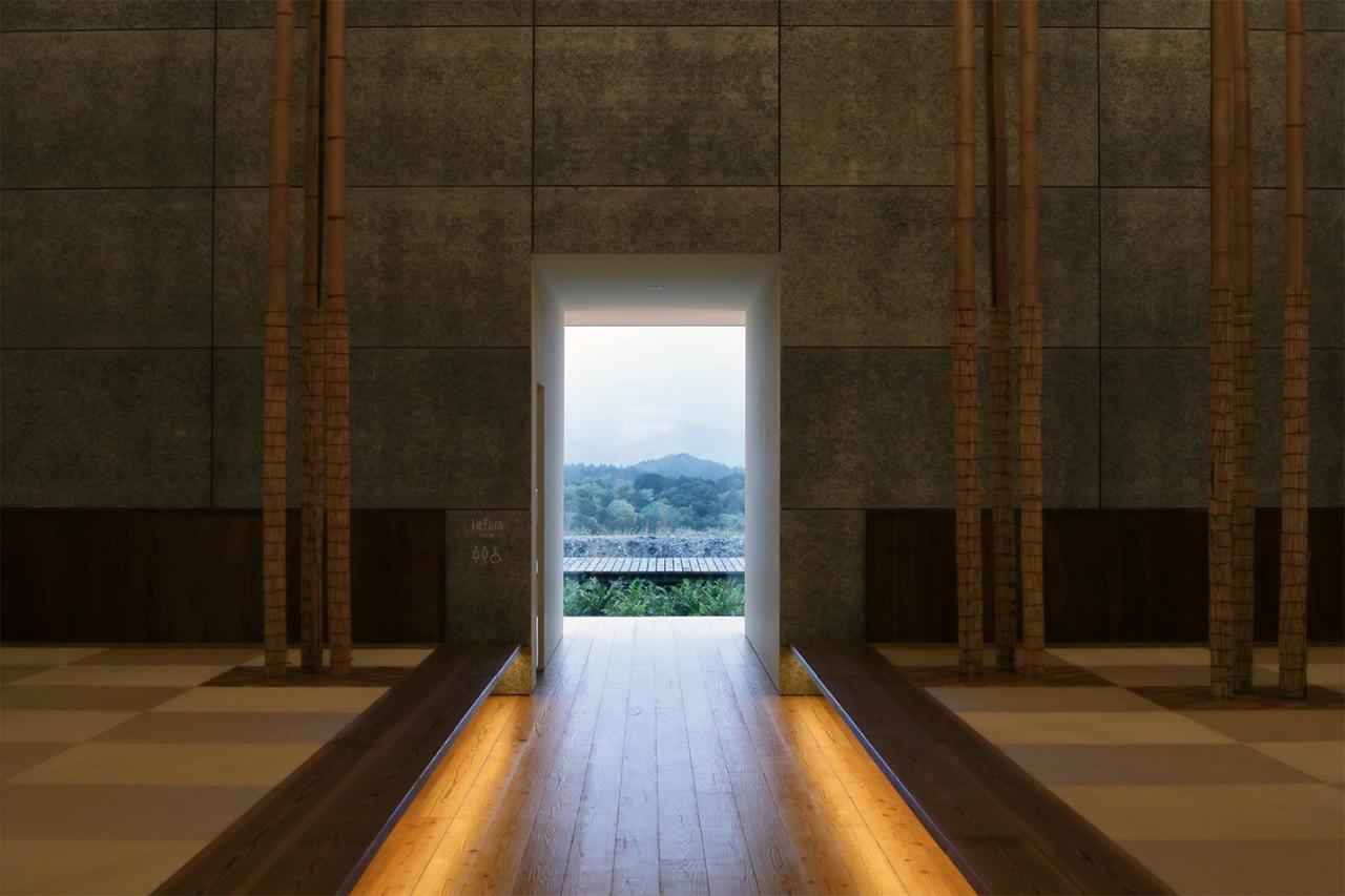 入口すぐの湯あがり処「七十二候の間」は72本の竹であしらわれた贅沢な空間。かつて山野を歩き回って薬草を探していた、本草学者の休息をイメージしたという。