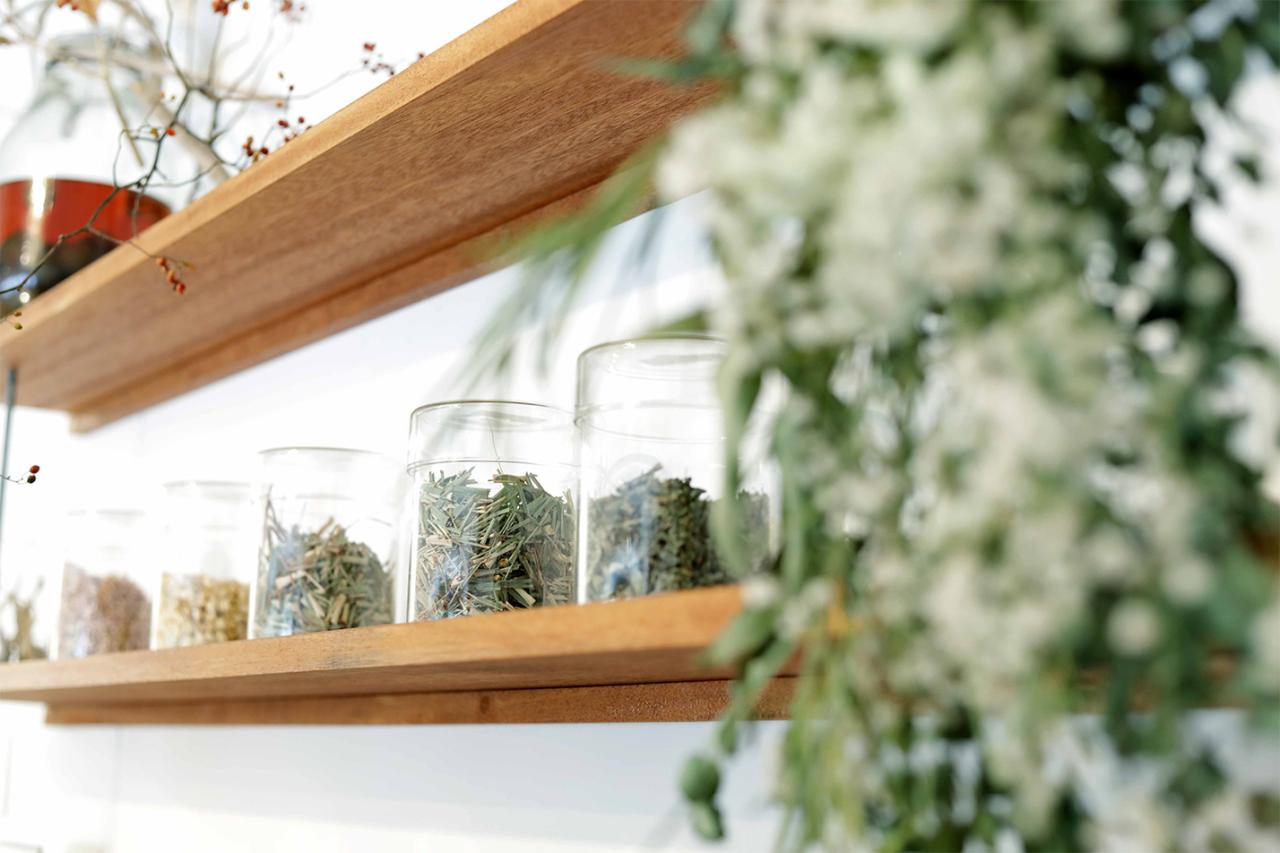 降っても晴れても美しい店内。スタッフの葵さんは多気町在住のフローリストで、ご自宅の庭で育った花々や木を使ってRINNEのほか、VISON HOTELや本草湯の設えも担当している。お店で月に一度開催しているフラワーアレンジメントのワークショップは、東京から通う人もいるほど人気だ。