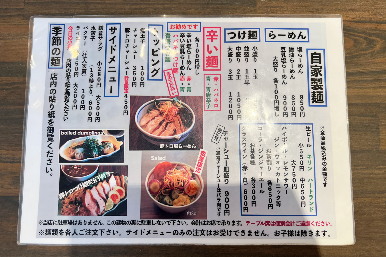 「せっかく鎌倉に来たのであれば、“鎌倉らしい”ものが食べたい」。その一心で訪れたのは、神奈川県・鎌倉駅から徒歩約10分、六地蔵の交差点を過ぎたあたりにあるラーメン屋さん〈一閑人〉です。「鎌倉らしい=ラーメン?」と疑問に思われてしまいそうですが、このお店でしかいただけないラーメンがあるんです。早速メニューを見てみましょう。