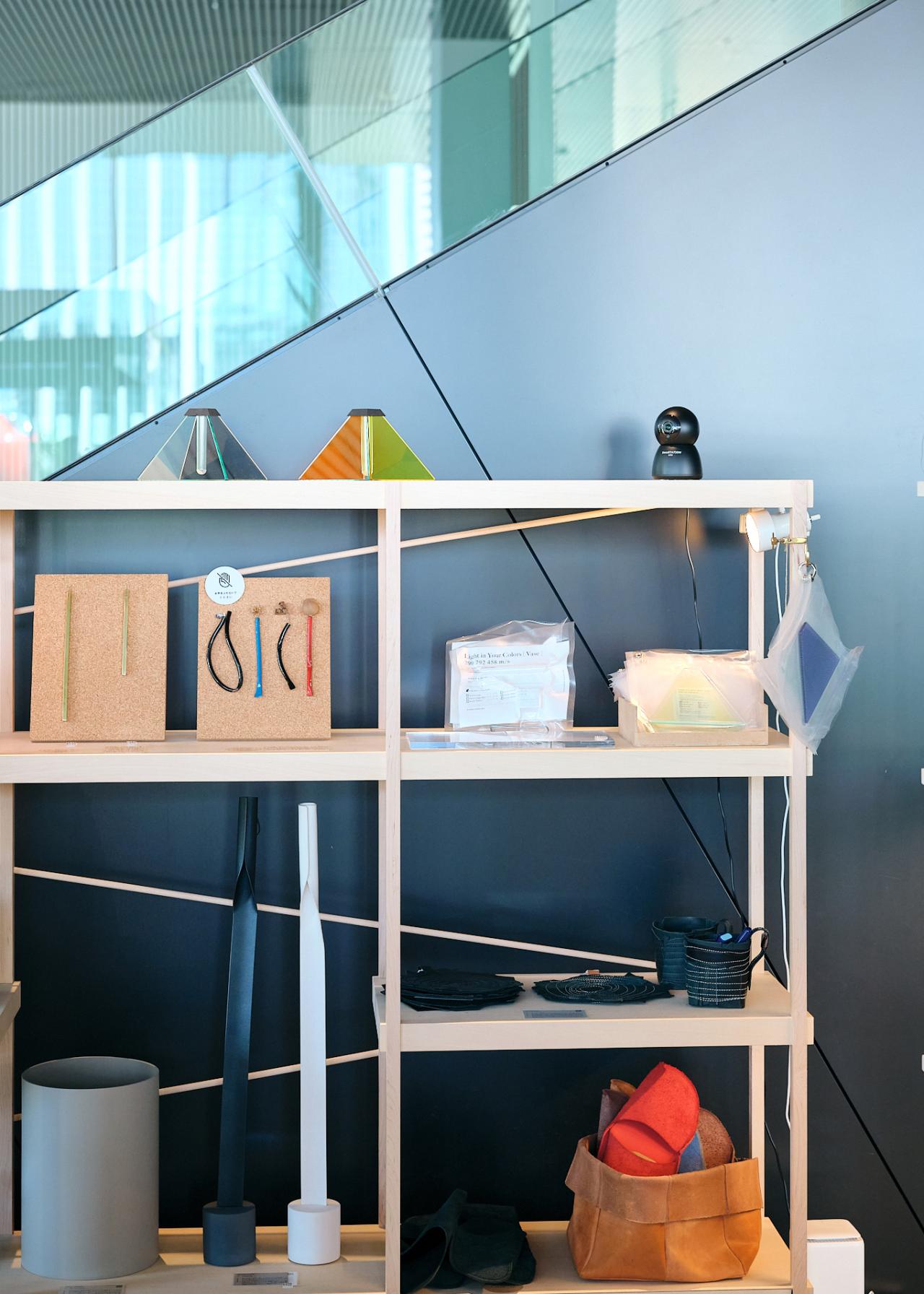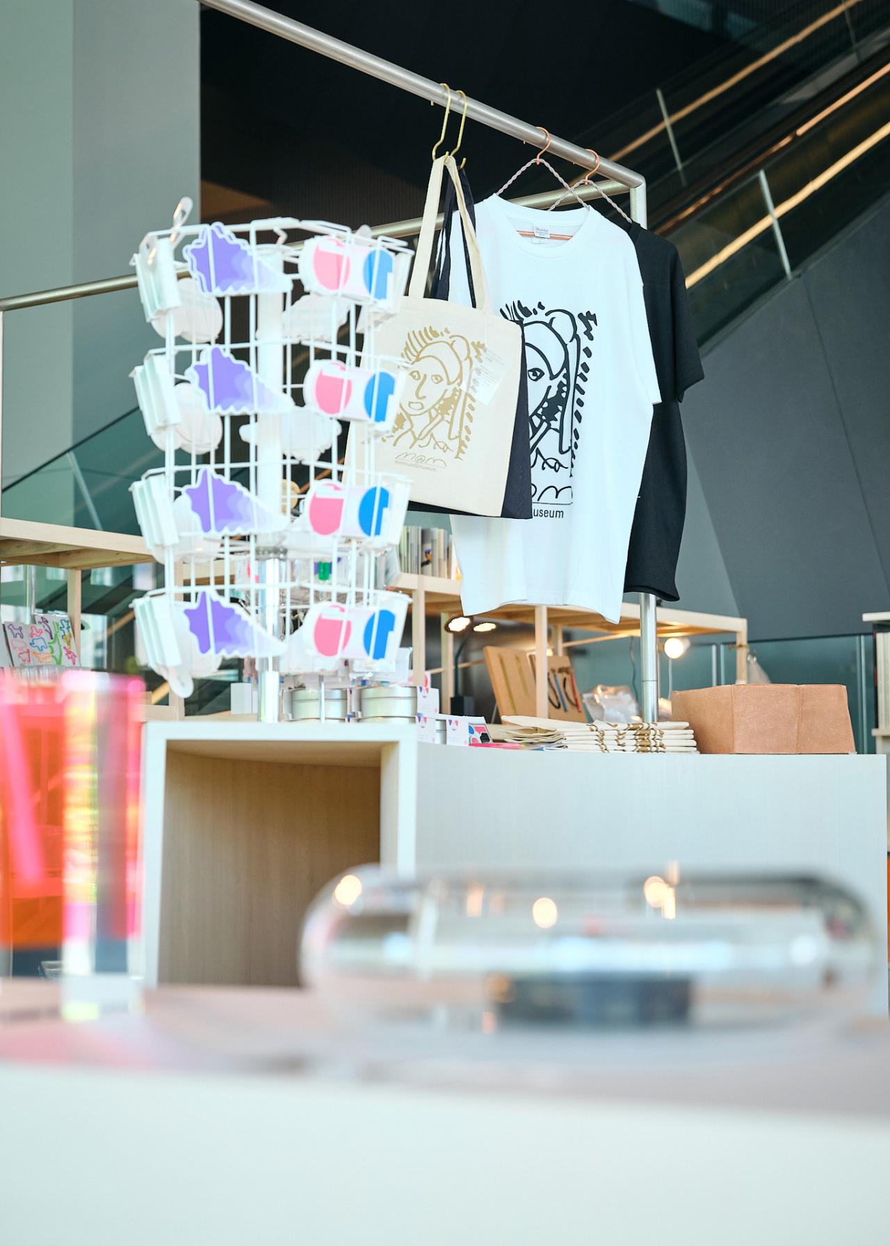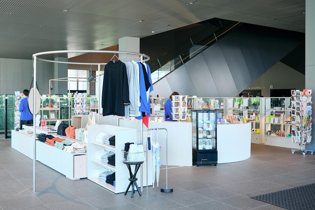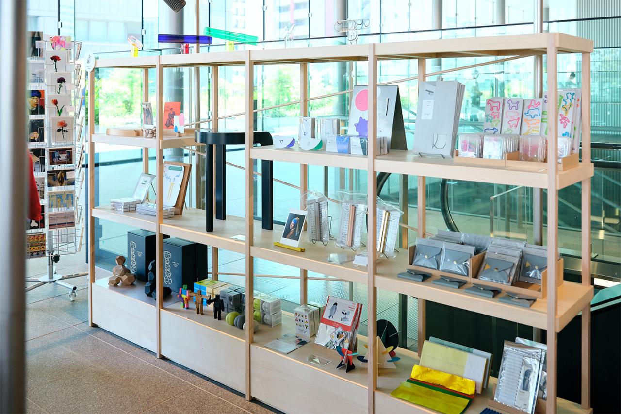 ここでしか見られないラインナップを楽しみたいなら、今回は2階にあるミュージアムショップ「dot to dot today」へ。開放的なエリアにクールなインテリアが設けられていて、入る前から期待が膨らむ。