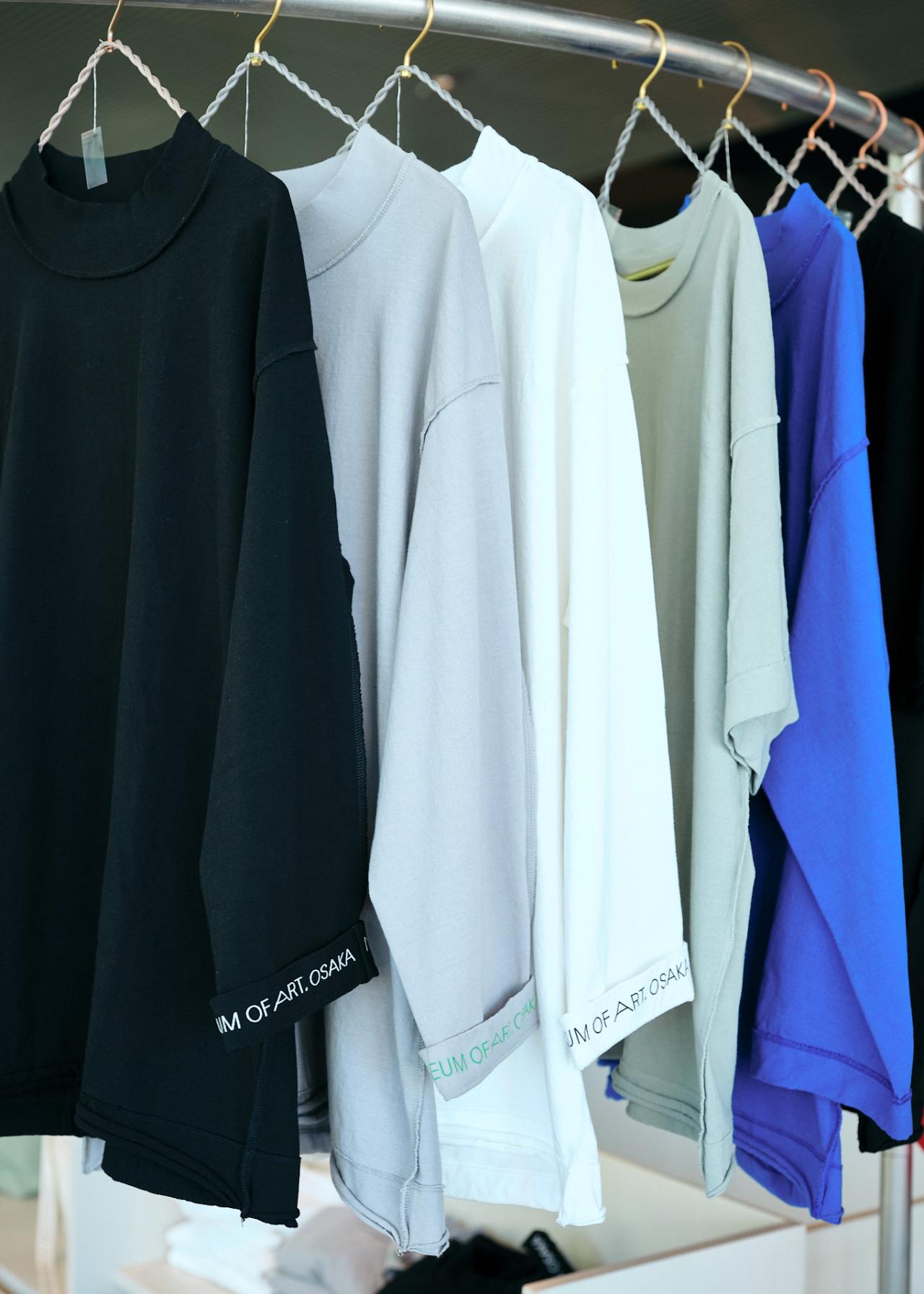 「ワードローブにずっと置いておきたい服」がコンセプトのドメスティックブランド「tone」が作る大阪中之島美術館公式グッズのTシャツ。外に縫い目のあるストレスフリーな肌触りや、袖の内側に施されたロゴなど、ディティールにこだわりが満載。ショップスタッフの制服にもなっているから、着こなしの参考にして。