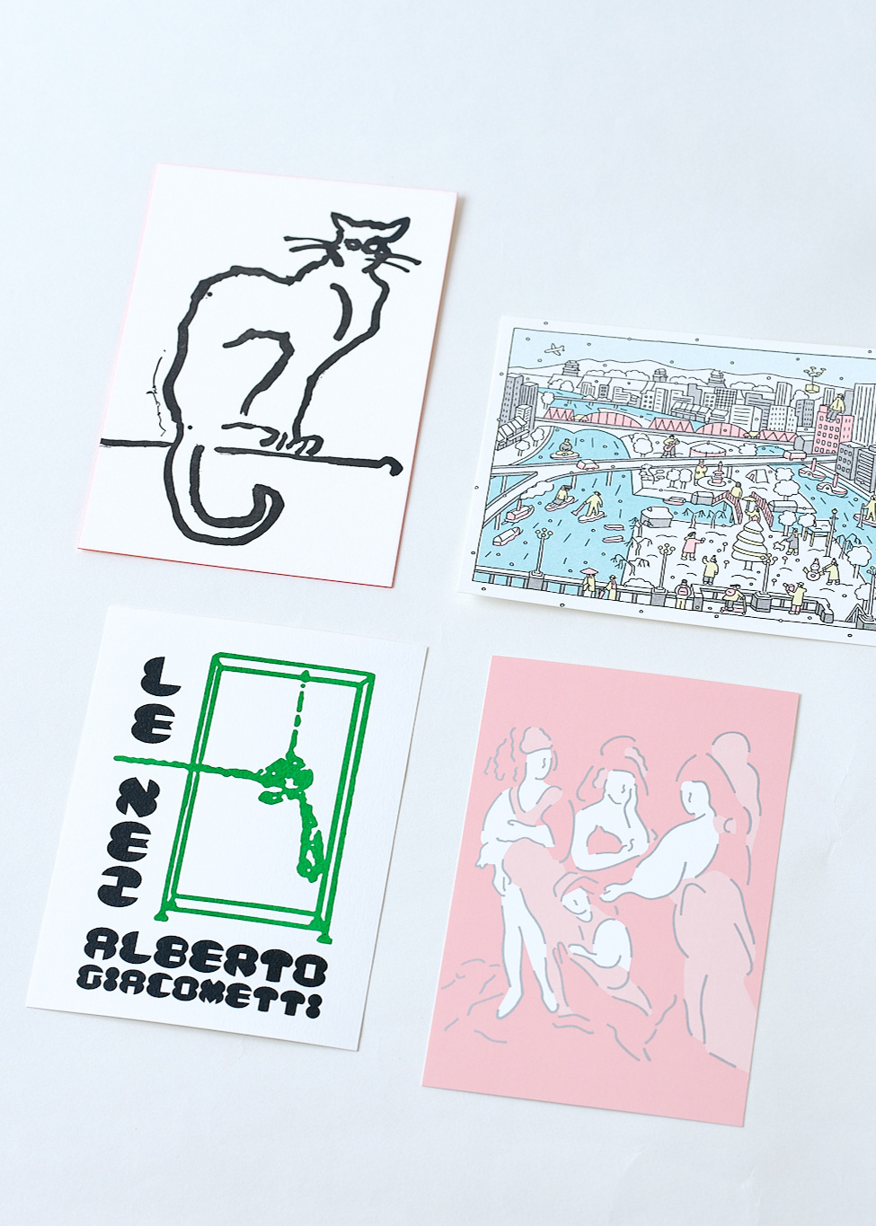美術館の収蔵品のポストカードは定番人気のアイテムだけど、ここでは一工夫加えたデザインに。現代のアーティストとコラボレーションし、新たなアートを生み出している。形や紙質もそれぞれ異なり、並べてみるとまた魅力的で、思わずコレクションしたくなる。